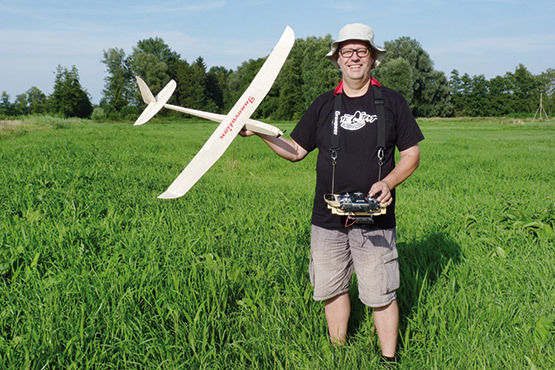 Super-sauber gelaserte Holzbrettchen, ein schöner, bunter 1:1-Bauplan mit Schnittzeichnungen, eine Anleitung mit Fotos der einzelnen Arbeitsschritte und alle benötigten Kleinteile. Der Innovation von Höllein macht schon im Baukasten-Zustand Freude. Uwe Gingter erprobt den 1,25-m-Holzbausatzsegler in der neuen FMT.