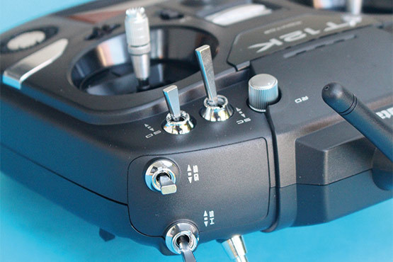 Der Sender T12K bietet 12 Proportionalkanäle und zwei Schaltkanäle sowie umfangreiche Telemetrie-Funktionen und arbeitet mit dem FHSS-Übertragungssystem. Alternativ besteht die Möglichkeit, auf die Modulationsart S-FHSS umzuschalten, dann aber mit dem Verzicht auf die Telemetriefunktionen.