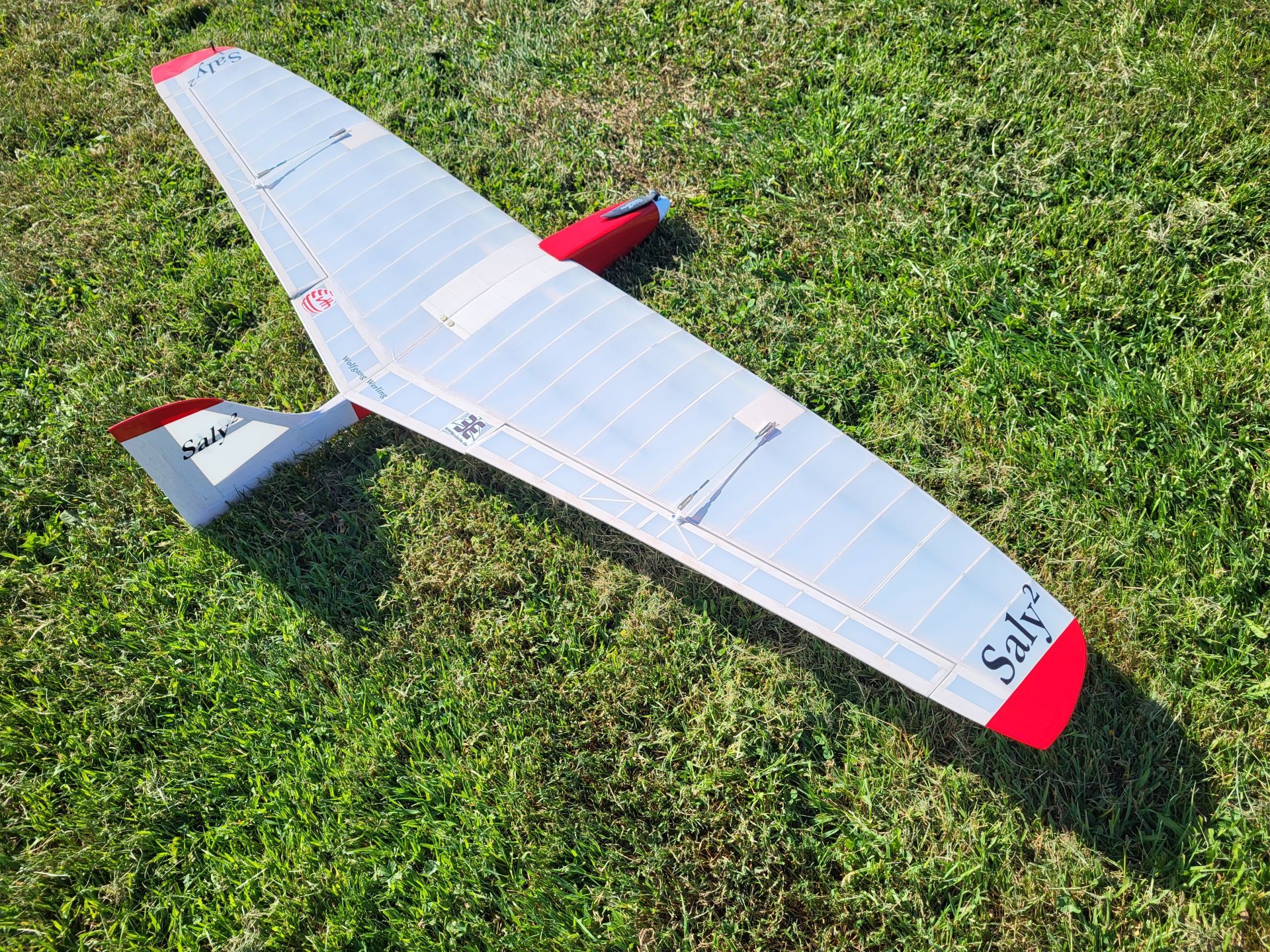 Der Modellname Saly ist abgeleitet von der SAL-Modellklasse, was für Side-Arm Launched steht. Und die hochgestellte Zwei in der Modellbezeichnung signalisiert, dass mit dem Modell doppelter Spaß zu erwarten ist, denn der Saly² kommt mit zwei Rümpfen daher – als reine Seglerversion und zusätzlich mit einem Elektro-Rumpf. Schleuderstarts mit dem Saly² machen Spaß, aber was macht man, wenn man mehrfach geschleudert hat und feststellen muss, dass es nicht trägt? Man könnte wieder heimgehen oder das Modell wechseln. Beim Saly² tauschen wir auf dem Flugfeld einfach nur den Rumpf und schon haben wir einen sehr leichten E-Segler, mit richtig stabiler Tragfläche. Und weiter geht die Thermiksuche…