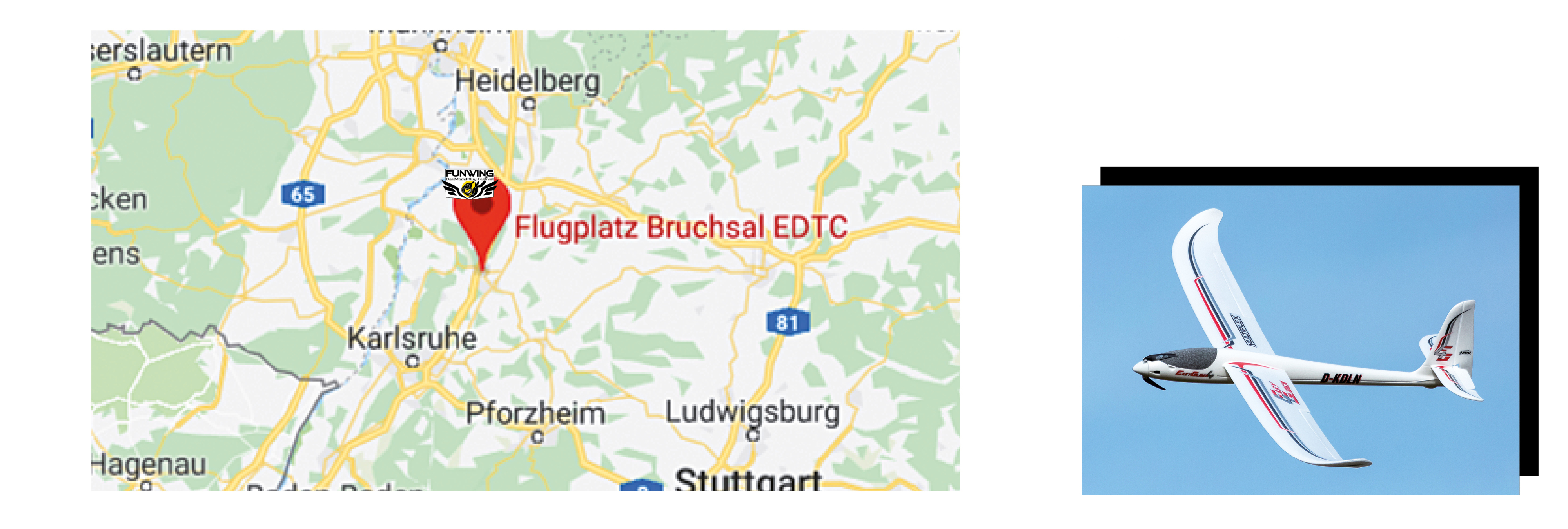 - Adresse fürs Navi: Flugplatz LSV Bruchsal, Otto Lilienthalweg 1, 76646 Bruchsal