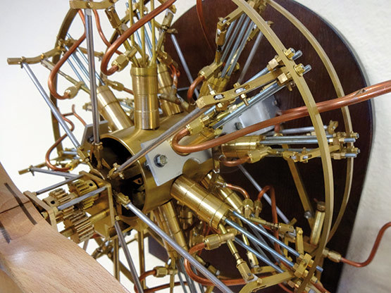 Seit einigen Jahren hängt sein 5-Zylinder-Sternmotor, den Christian Buschmann in der MASCHINEN IM MODELLBAU 2/2014 vorgestellt hat, nun schon an der Wand und läuft noch immer munter vor sich hin. Hin und wieder begleitet er ihn auf Ausstellungen. Unser Autor findet den Bewegungsablauf und die Sternbauweise interessant und die lässt ihn auch nicht so recht los. Daher präsentiert er in der neuen MASCHINEN IM MODELLBAU sein neuestes Werk: Einen 14-Zylinder-Doppelstermotor mit Dampfantrieb.