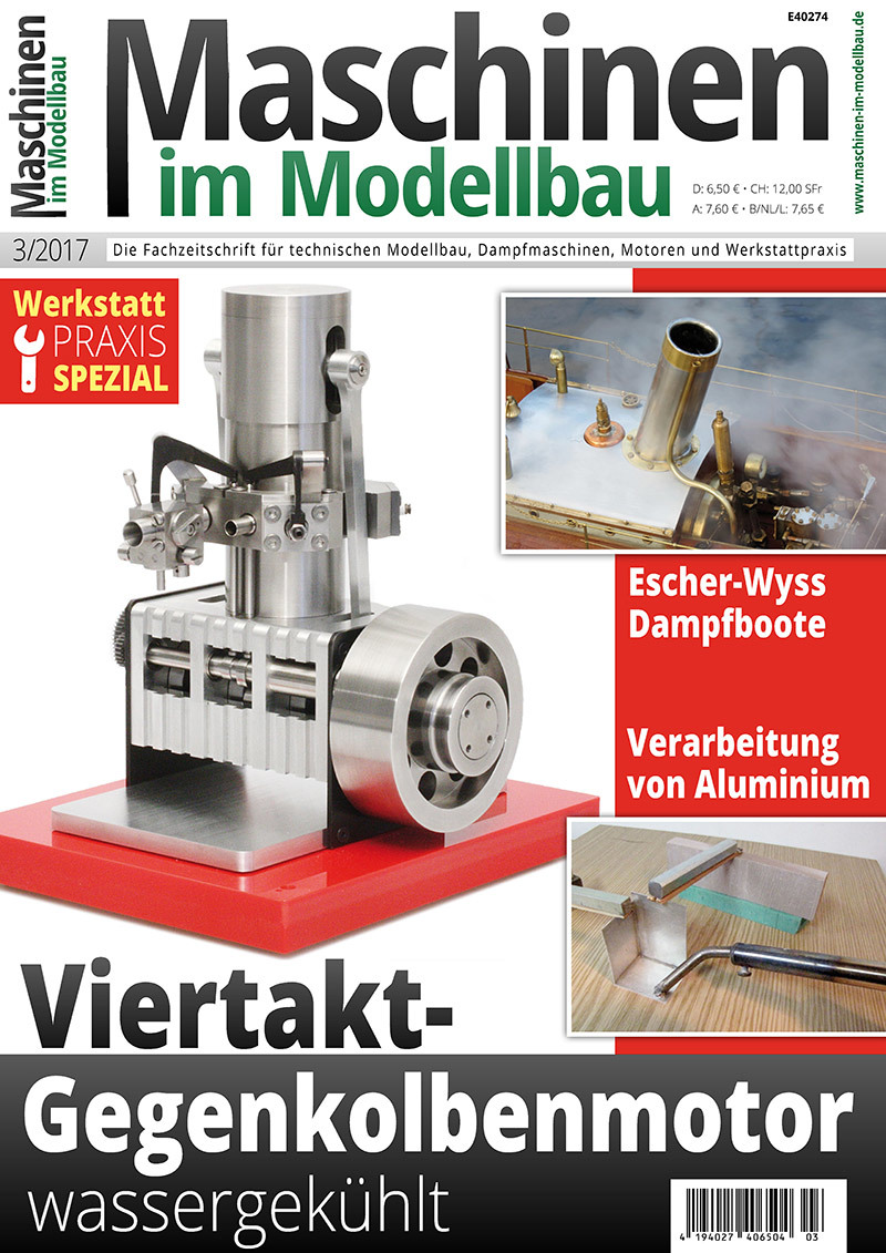 Wie dann mit der richtigen Werkstattpraxis faszinierende Modelle entstehen, zeigt uns in dieser Ausgabe Wolfgang Tepper mit seinem wassergekühlten Viertakt-Gegenkolbenmotor. Bei diesem Beitrag hat mich nicht nur das tolle Modell mit seiner faszinierenden Technik begeistert, sondern auch die Aufarbeitung unseres Autors, der die Arbeit am Motor detailliert beschreibt und mit tollen Fotos illustriert. Diese und viele weitere Themen finden sich in der MASCHINEN IM MODELLBAU 3/2017 – ab sofort digital erhältlich und ab dem 19.4.2017 im Zeitschriftenhandel!
