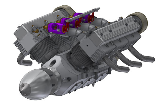 Die Komplexität der einzelnen Bauteile kann dadurch reduziert werden, dass sogenannte gebaute Bauteile verwendet. Eine gebaute Kurbelwelle oder ein gebautes Kurbelgehäuse besteht aus mehreren Teilen, die zusammengefügt das komplexe Bauteil ersetzen. Seine Lösungen dieses Problems stellt Wolfgang Trötscher in der MASCHINEN IM MODELLBAU 4/2018 am Beispiel seines WT2727-V6-OHC vor, einem V6-Motor mit zwei oben liegenden Nockenwellen.