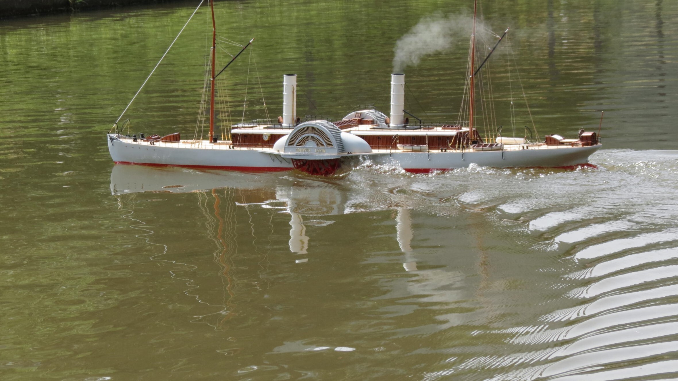 Thomas Hillenbrand ist begeistert von den außergewöhnlichen Konstruktionen der Dampfschiffe aus dem amerikanischen Bürgerkrieg. Mit der „Colonel Lamb“ hat er nun wieder eines dieser Fahrzeuge gebaut, das schon fast etwas von einer Yacht hat.