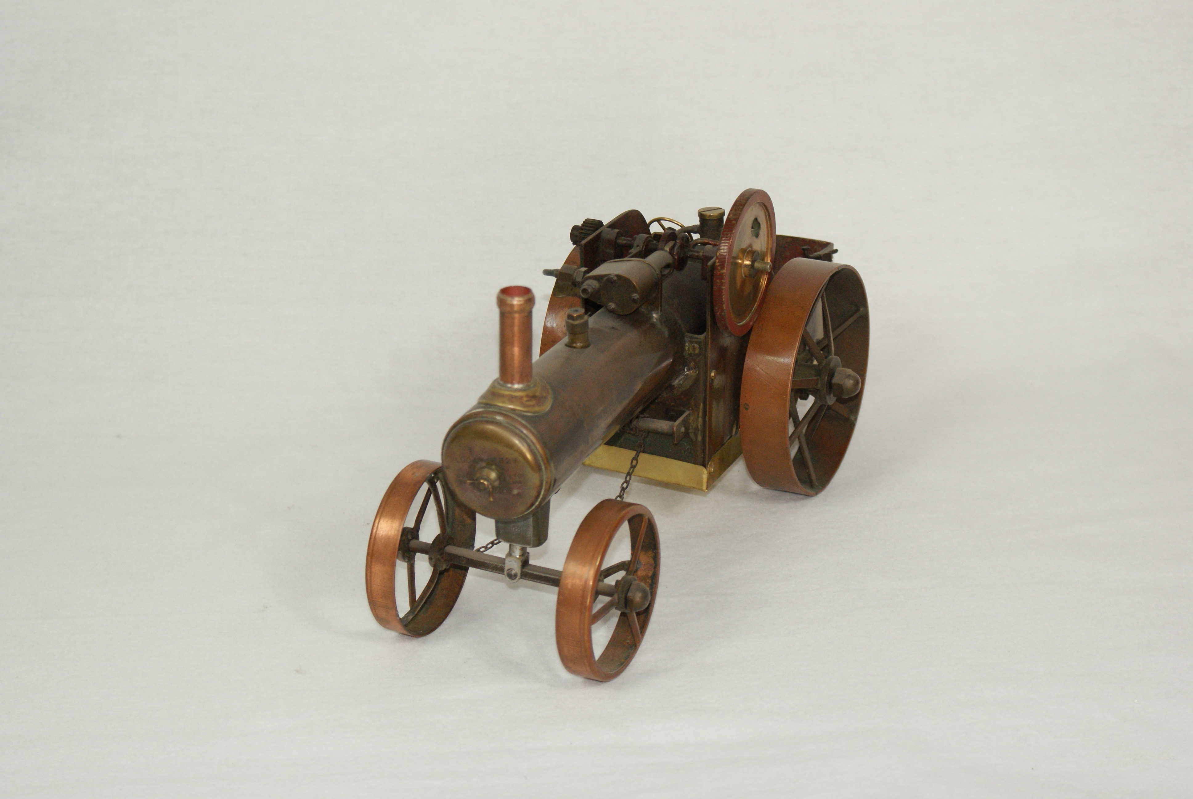 Eine Schönheit ist er nicht – aber er hat Geschichte: Der Dampftraktor Lucas. Peter Gatz hat dieses Modell in seiner Sammlung und gleich dazu auch noch ein Foto, welches einen Vorbesitzer beim Spielen damit zeigt.