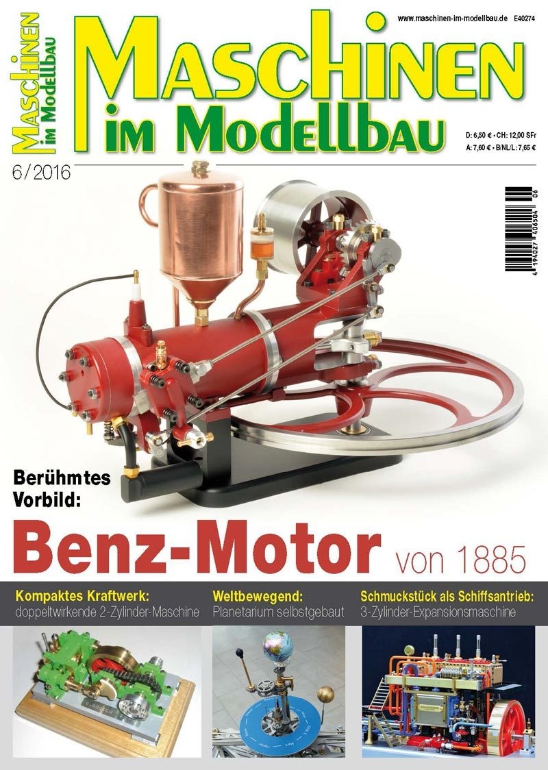 Weiterhin präsentieren wir Ihnen den Eigenbau eines außergewöhnlichen und originalgetreuen Planetariums auf Basis der neuesten NASA-Planetenbahnen und Eberhard Brosch stellt seine kompakte oszillierende, zweiseitig wirkende 2-Zylinder-Dampfmaschine vor. Andreas Bender hingegen erläutert den Eigenbau seines Viertaktmotors mit Schieberventil, bei dem er ein besonderes Augenmerk auf die Schönheit des Motors legte. Diese und viele weitere Themen gibt es in der MASCHINEN IM MODELLBAU 06/2016 – ab sofort digital erhältlich und ab 13.10.2016 im Zeitschriftenhandel.