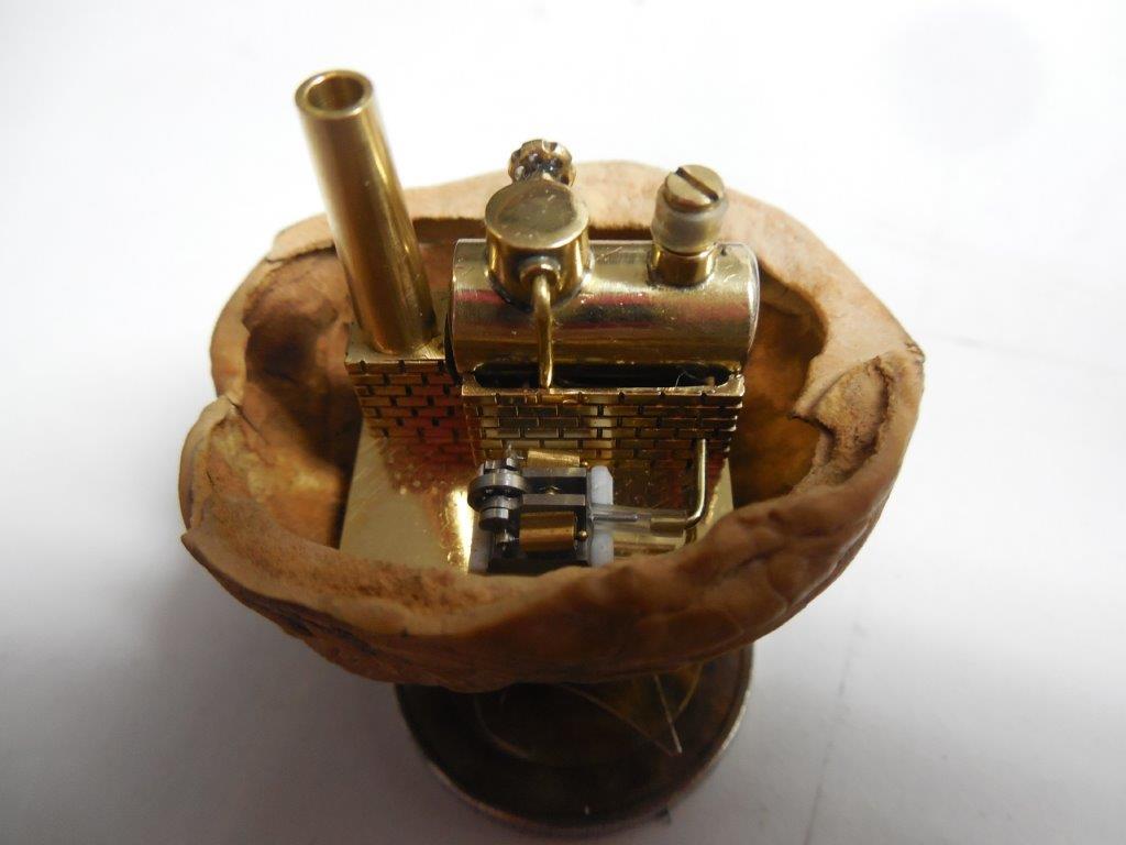 Kleiner geht es kaum noch: Dieter Philipp präsentiert seine komplette Dampfanlage, die in eine Walnussschale passt. Dass es dabei einige Herausforderungen zu bestehen galt, beschreibt er in seinem Beitrag.