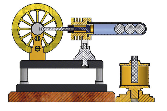Wahrlich ungewöhnlich ist die Stirling-Konstruktion, die Jan Ridders in der neuen MASCHINEN IM MODELLBAU (mit komplettem Bauplan) vorstellt. Sie kommt ohne herkömmlichen zweiten Kolben aus und hat ein außergewöhnliches Laufverhalten.