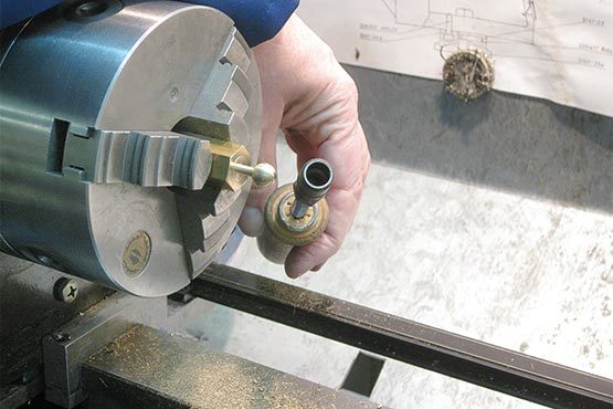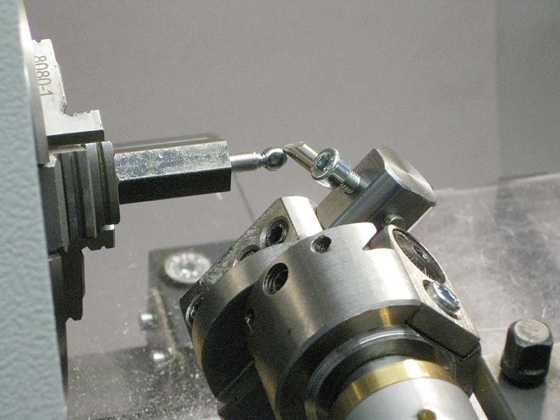 Für seine Fahrzeugmodelle brauchte Herwig Lorenz von Zeit zu Zeit kleine Kugeln oder Bauteile, die kugelförmige Bereiche haben wie z.B. Kugelgelenke, Knochengelenke oder Vorderachsschenkel. Wenn so eine Arbeit anstand, fertigte er diese Teile immer nach der „Röhrenhandstahlmethode". Aber obwohl man mit dieser Methode einwandfreie geometrisch exakte Kugeln fertigen kann, fühlte er sich dabei nicht richtig wohl. Es ist nämlich nicht ganz risikofrei, mit einem Handstahl in Drehfutternähe kräftig gegen ein Werkstück zu drücken. Wie er jetzt solch runden Sachen fertigt, lesen Sie in der neuen MASCHINEN IM MODELLBAU