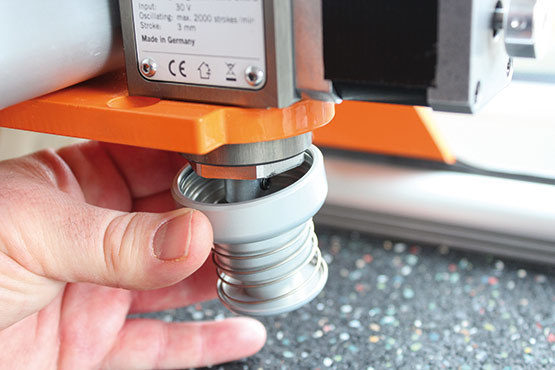 Das oszillierende Tangentialmesser von Stepcraft ist für zahlreiche Materialien eine perfekte Schneidmöglichkeit. Mit dem neuen Niederhalter lässt sich damit beispielsweise Depron auch ohne Vakuumtisch sicher verarbeiten. Und das Rillradset ist ein Produkt speziell für Nutzer, die viel mit Karton arbeiten.