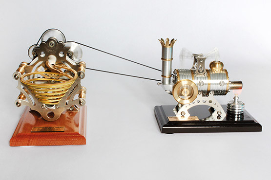 Die Firma Böhm Stirling-Technik aus Neustadt-Aisch ist ein Unternehmen, das nicht nur wunderschöne Stirling- und Vakuummotoren als Bausatz und als Fertigmodell im Angebot hat. Schon immer gehörten auch außergewöhnliche Antriebsmodelle zu den Produkten dieses Unternehmens. Diese sind, wie die Motoren auch, nicht nur technische Leckerbissen. Auch das Design und die dahinterstehenden Ideen machen die Modelle zu etwas ganz besonderem – und zu echten Hinguckern.