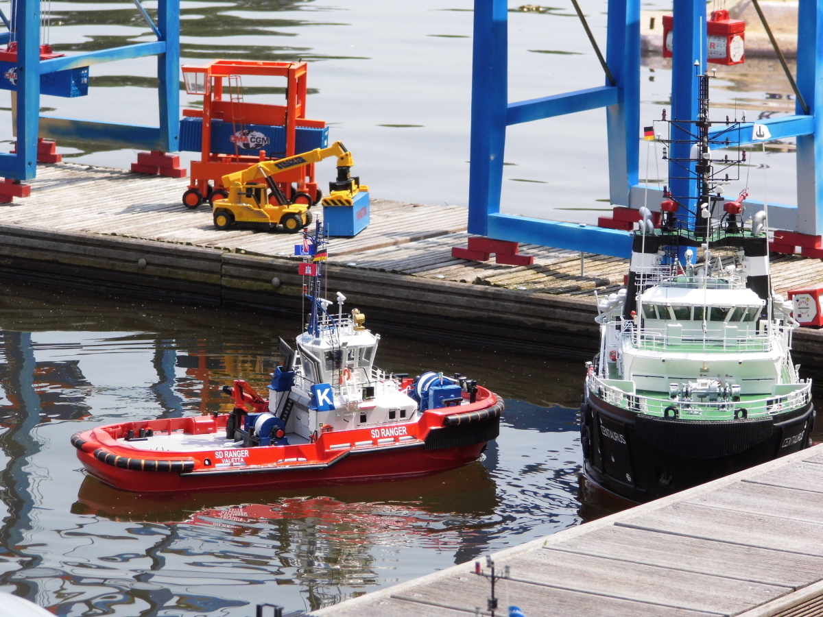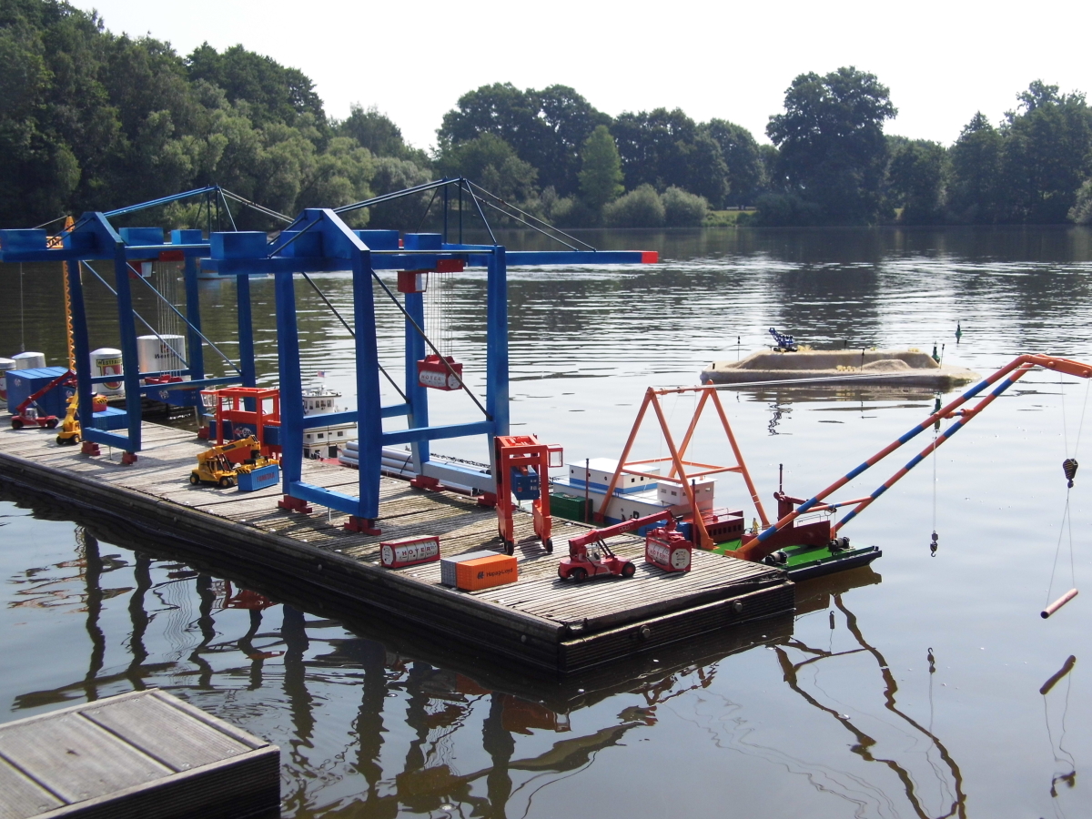 Auch wenn vielen bei 40 Grad plus eher nach Schwimmen und Eis war. Wie in jedem Jahr hat der Hafenmeister des SMC mit seinen Kolllegen den Hafen, um einige Containerbrücken, eine Häuserzeile und vieles mehr erweitert. Der Tag verging wie im Fluge, es war schnell 17 Uhr, und doch wollten einige nicht gehen und fuhren trotz der Hitze weiter ihre Jobs im Hafen. So sollte es sein. Mein Fazit und das vieler Mitwirkender ist nur Positiv. So etwas lohnt sich und bringt mächtig Spaß, denn schöne Modelle und so ein Hafen laden einfach ein zu solch einem Treffen.