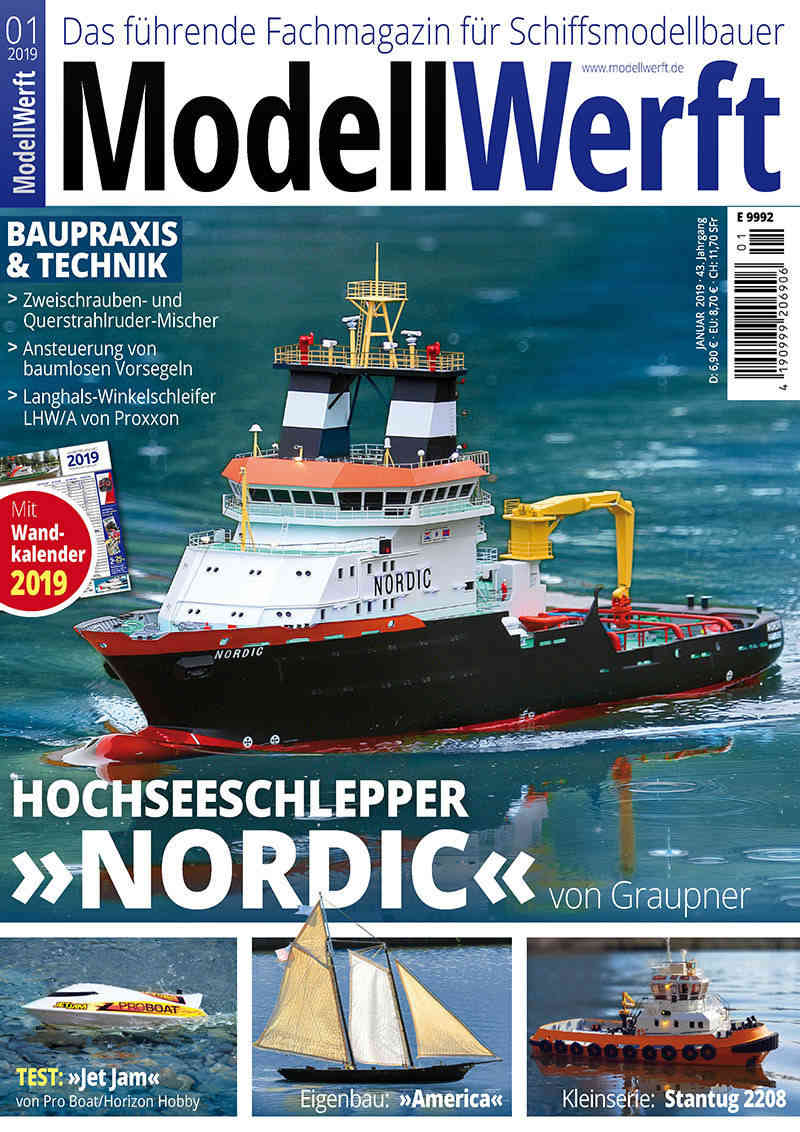 Nachdem Graupner das Fertigmodell des modernen Hochseeschleppers Nordic für einen vierstelligen Preis auf den Markt brachte, waren die Modellbauer gespannt, ob und wann es vielleicht einen Baukasten davon gäbe. Die Hoffnung wurde nicht enttäuscht. Es kam tatsächlich etwas für die Modellbauer zu etwa der Hälfte des Fertigmodells auf den Markt. Andreas Stach hat die Nordic aus dem Baukasten für einen Modellbaufreund gebaut und berichtet hierüber ab Seite 12.