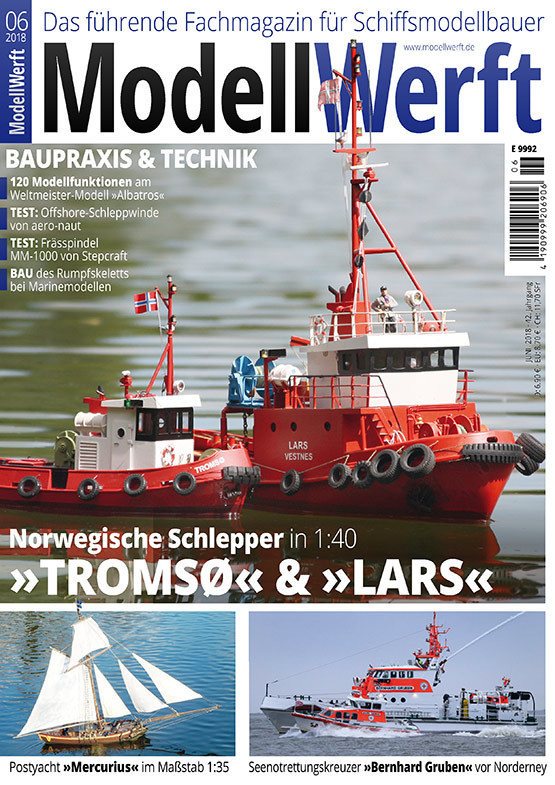 Die beiden Titelmodelle Tromsø und Lars im Maßstab 1:40 gehören zur Modellflotte von MODELLWERFT-Autor Malte Ossenkop, der sich auf den Bau von Schleppermodellen nach skandinavischen Vorbildern spezialisiert hat. Beide Eigenbauten bedienen sich einzelner Baukastenelemente wie beispielsweise dem Bootsrumpf, sie sind ansonsten aber vollständige Neukonstruktionen mit hochdetaillierten Aufbauten, aufwendigen Modellfunktionen und umfassenden Beleuchtungsmöglichkeiten. Unser Baubericht wird von wunderschönen Fahrfotos begleitet, die auf mehreren bayrischen Alpenseen geschossen wurden.