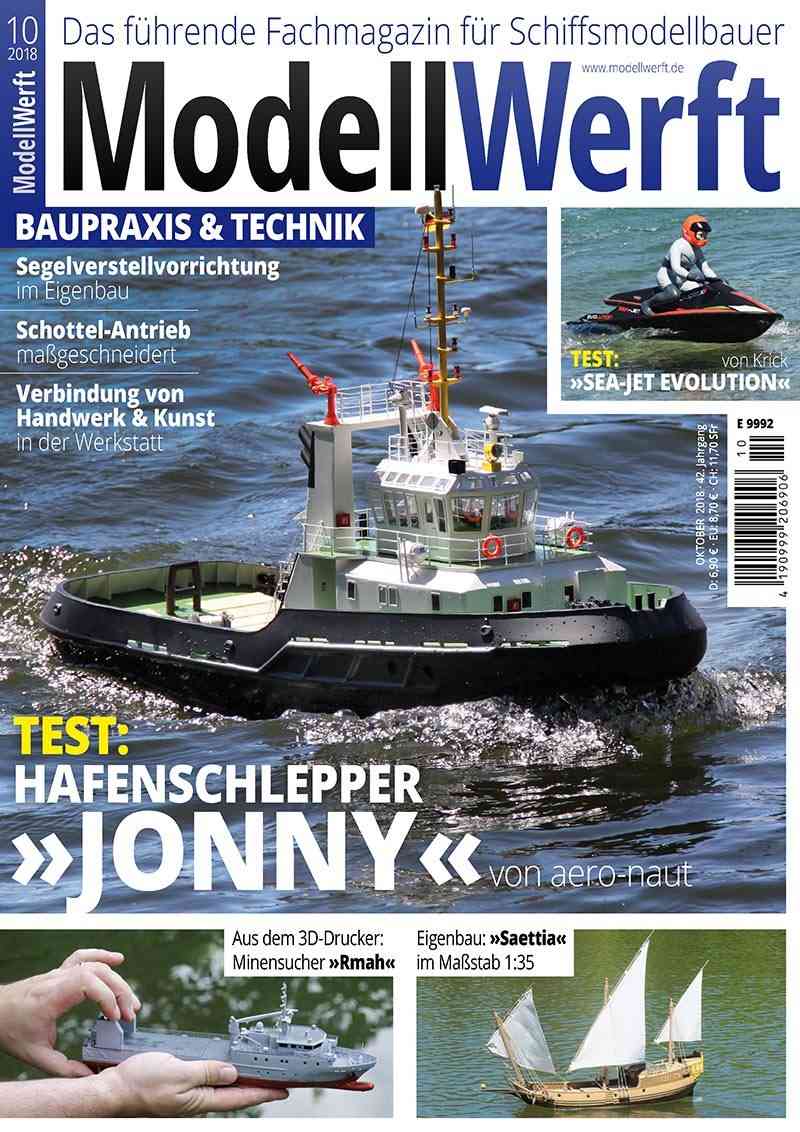 Manche Schiffsmodelle werfen ihre Schatten voraus. Sie sind lange angekündigt und stehen auf den Wunschlisten der Schiffsmodellbauer. Ein solches Modell ist der Hafenschlepper Jonny von aero-naut, der bereits einige Zeit in den „Startlöchern“ stand. Die Jonny wird aus einem klassischen Modellbaukasten aufgebaut. Die Entwickler von aero-naut legten großen Wert auf ein hervorragendes Fahrverhalten, ermöglicht durch ein exzellentes Rumpfdesign. Das Schleppermodell ist so konzipiert, dass es vom versierten Modelltüftler mit einem Maximum an Sonderfunktionen ausgestattet werden kann. Schlepper-Spezialist Günter Schmedeshagen hat die von vielen Modellbauern lang erwartete Jonny für die MODELLWERFT ab Seite 12 in der Ausgabe 10/2018 auf Herz und Nieren getestet.