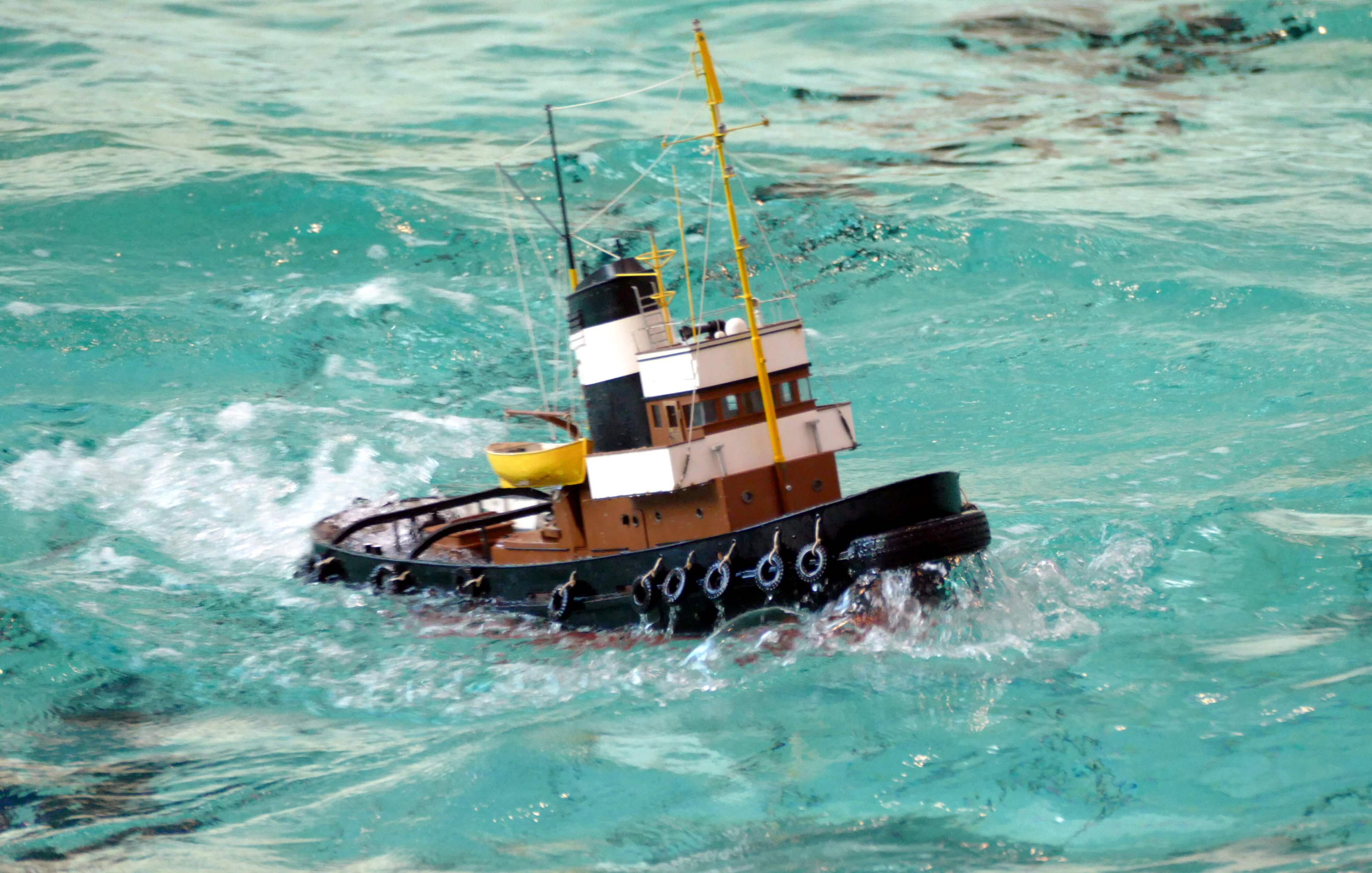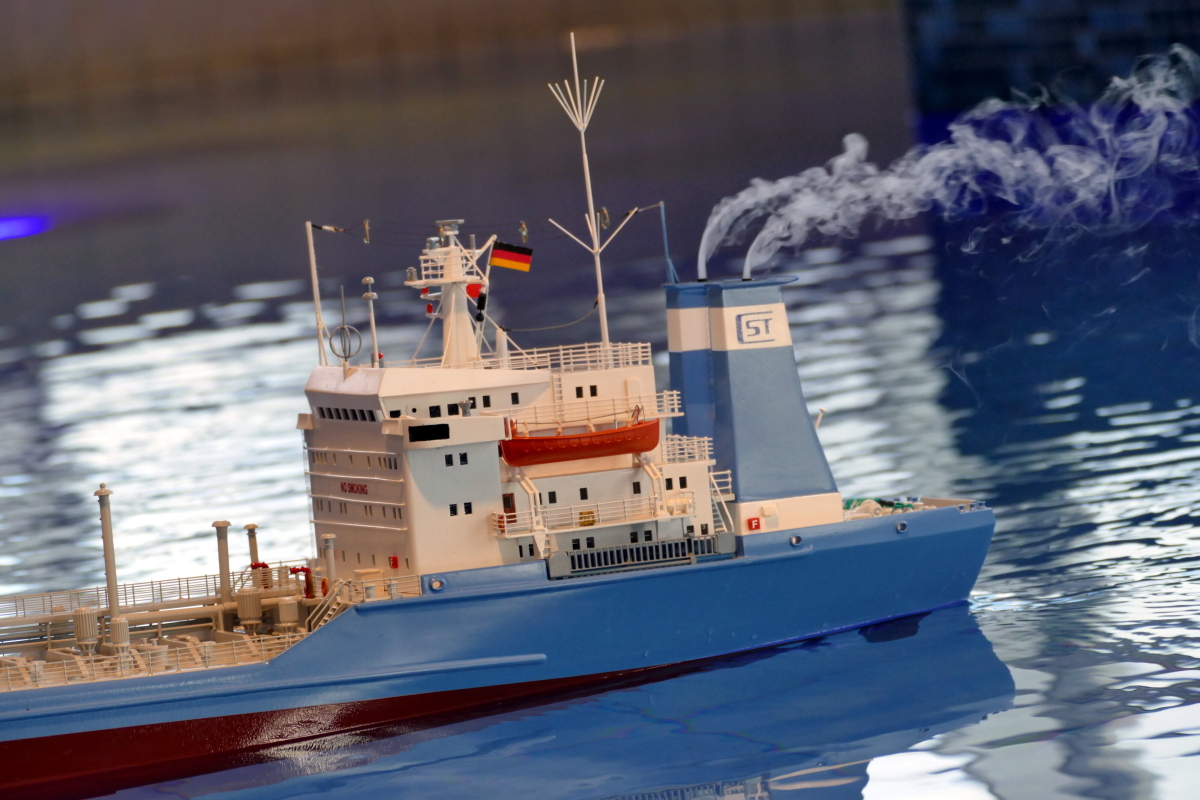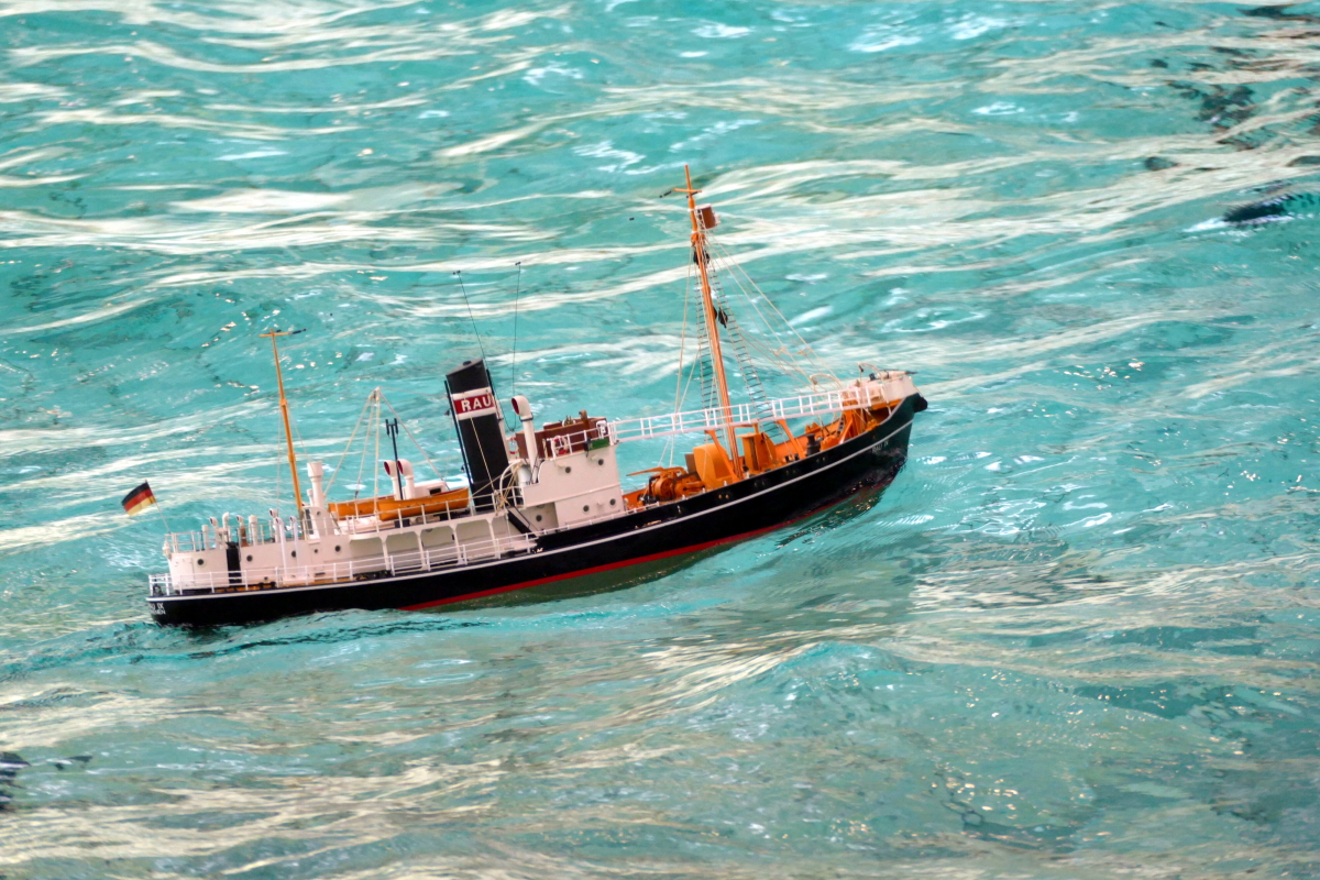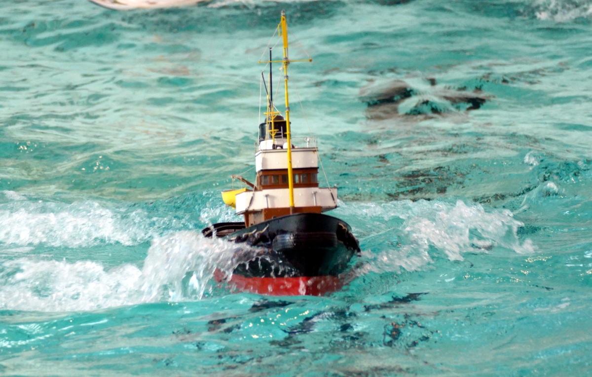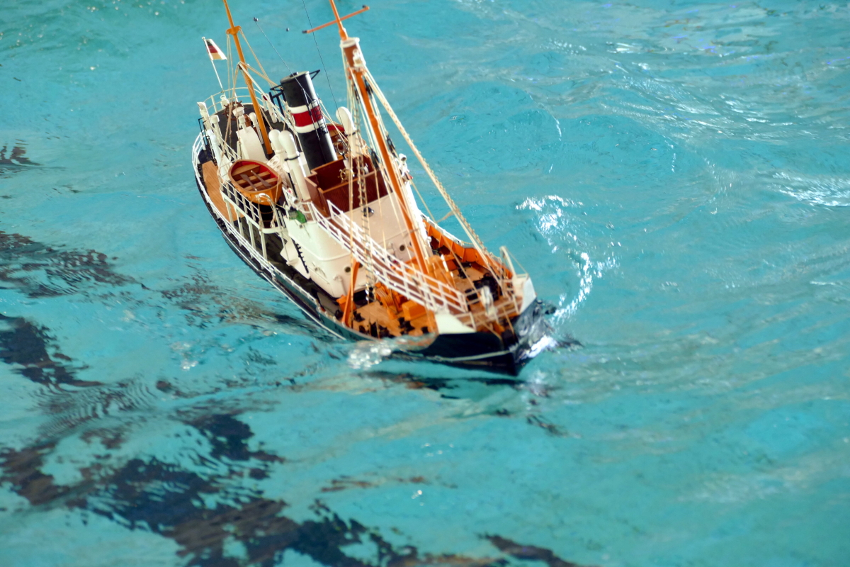 Zu jeder halben Stunde wurde im großen Meerwasserbecken die Wellenmaschine gestartet und das sonst ruhige Wasser wandelte sich binnen Sekunden zu schwerem Seegang. Unter den Augen zahlreicher begeisterter Zuschauer kämpften sich die Schiffsmodelle durch die auf den Maßstab gerechneten Monsterwellen. Dabei mussten die Kapitäne genau wissen, was sie ihren Modellen zumuten konnten. Würde man falsch navigieren, könnte das zum Kentern oder sogar zum Untergang des Schiffes führen. An diesem Tag allerdings lief alles glatt und kein Schiff kam durch die schwere See zu Schaden.