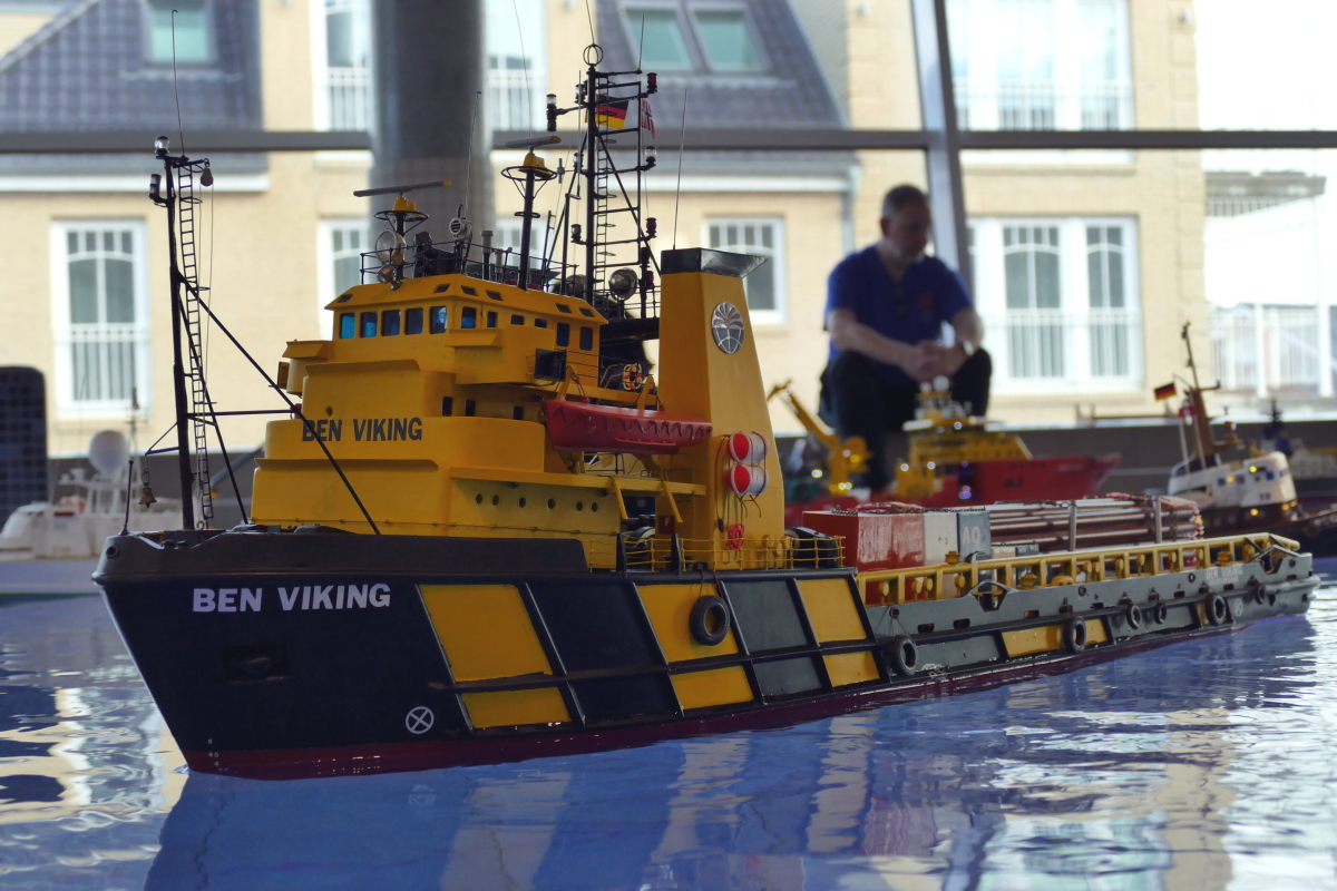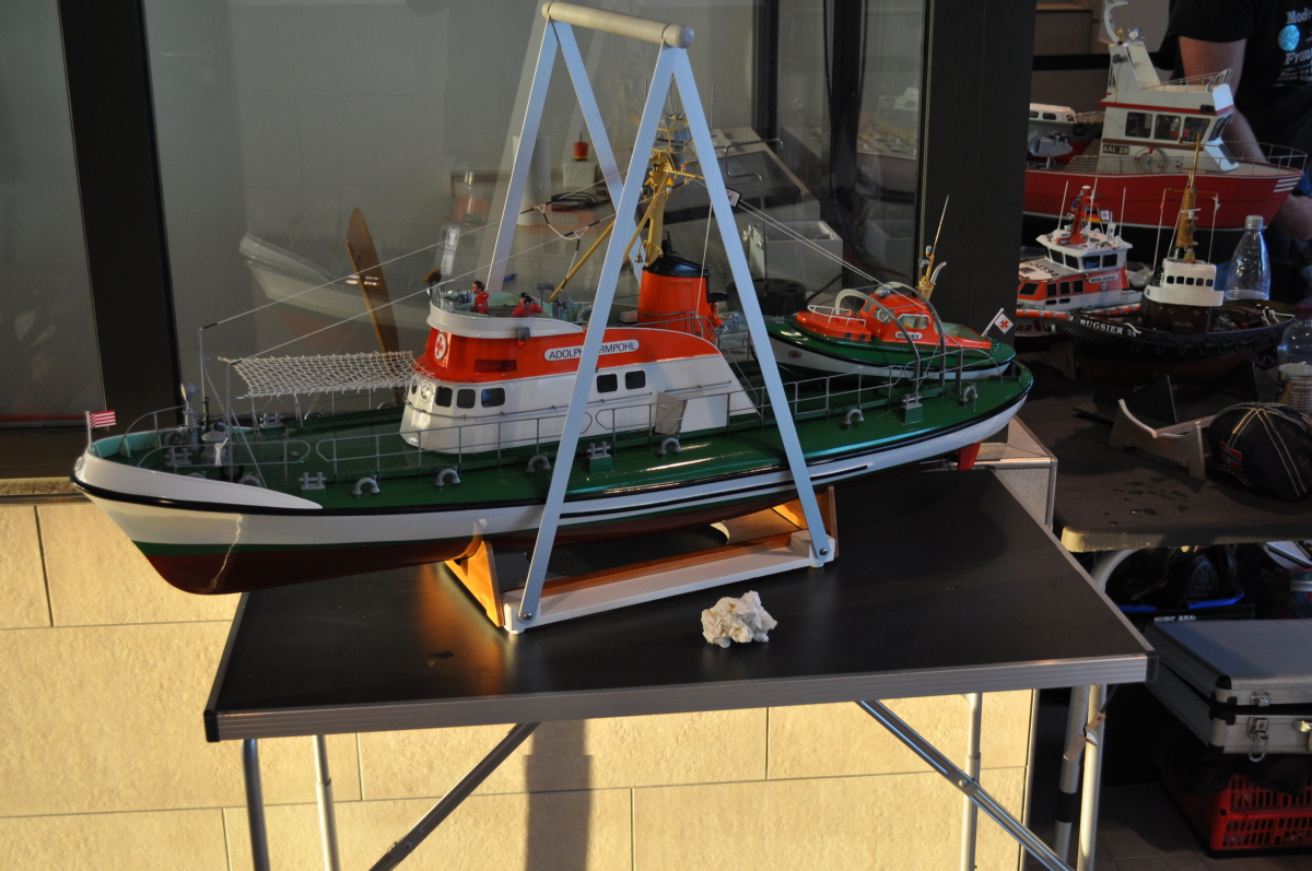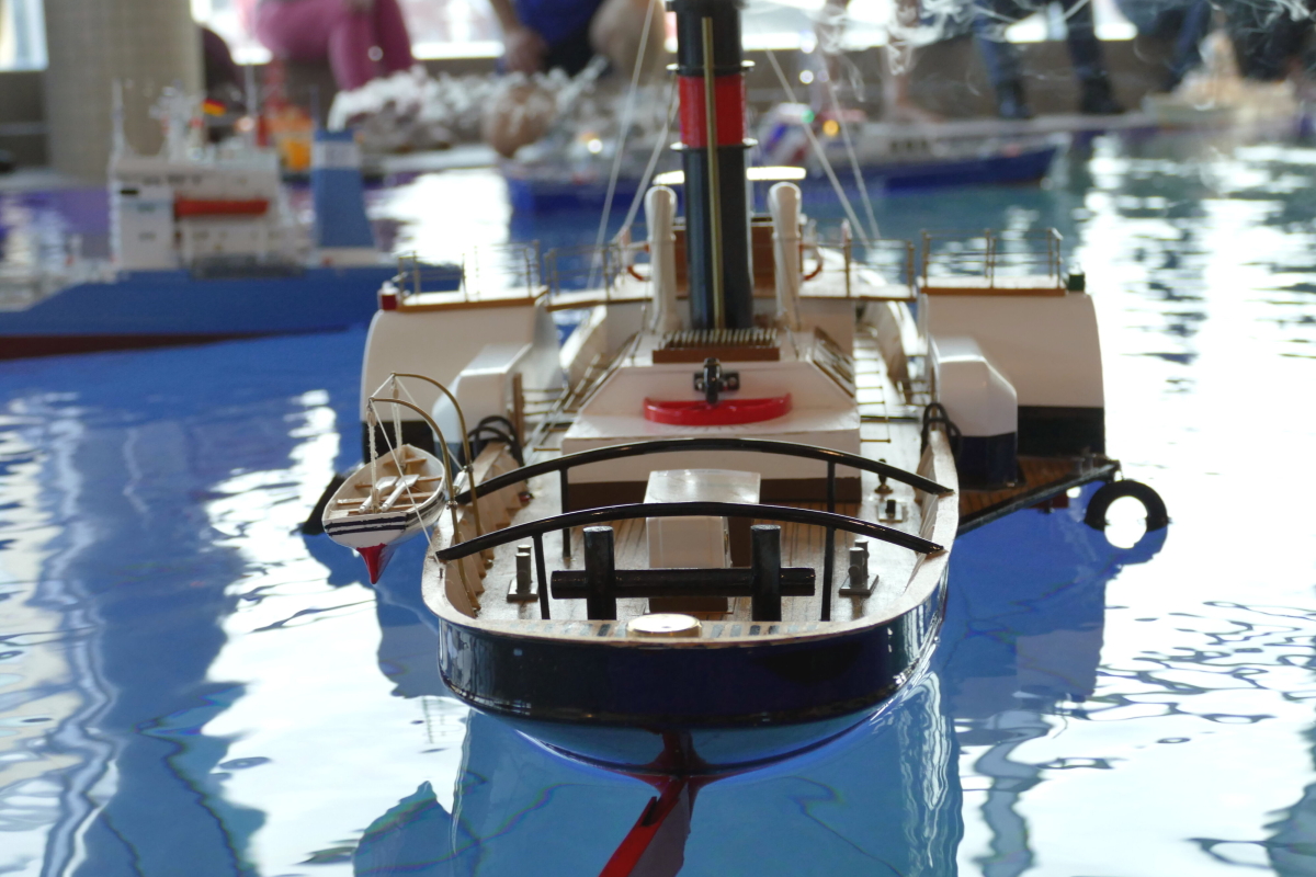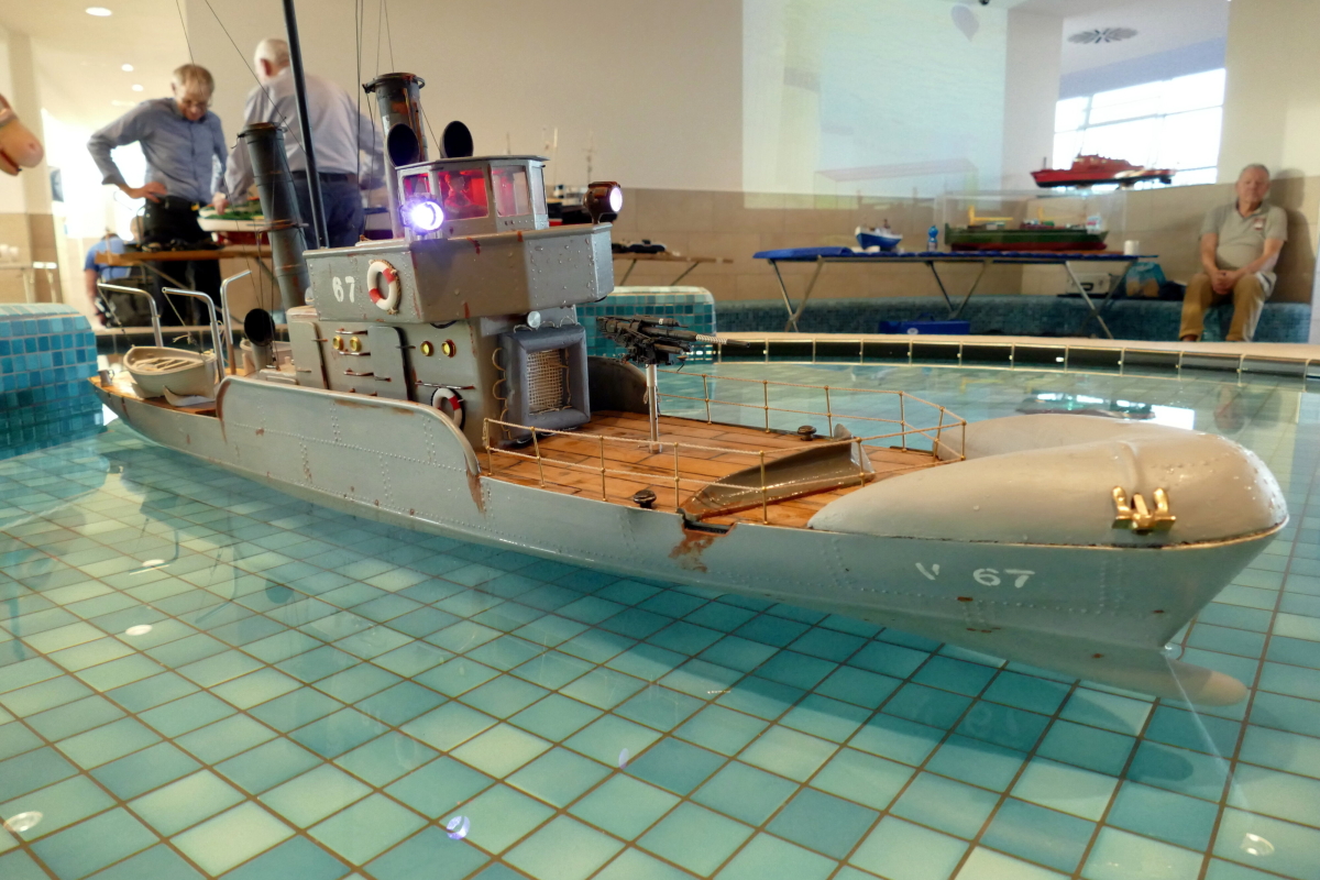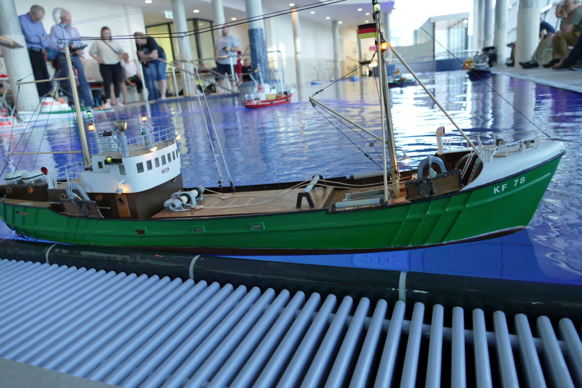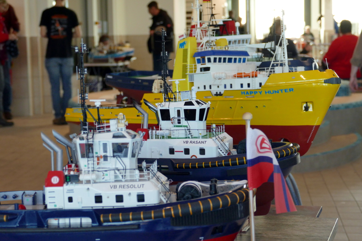Am 8. Januar kamen bei bestem Wetter Modellbauer aus ganz Deutschland in die kleine Gemeinde an der Westküste des nördlichsten Bundeslandes. Ab 10 Uhr war das Event für die Aussteller geöffnet und ab 11 Uhr für Jedermann. Doch im Gegensatz zu den allermeisten Veranstaltungen, fand das beliebte Indoor-Schaufahren in einem Meerwasserwellenbad statt. Das „Meerzeit Wellenbad und Spa“ (www.buesum.de/meerzeit) stellte seine Räumlichkeiten dafür zur Verfügung. Nach einer freundlichen Begrüßungsrede der Bäderleitung Frau Herrmann an die versammelten Aussteller wurden die ersten Modelle zu Wasser gelassen.