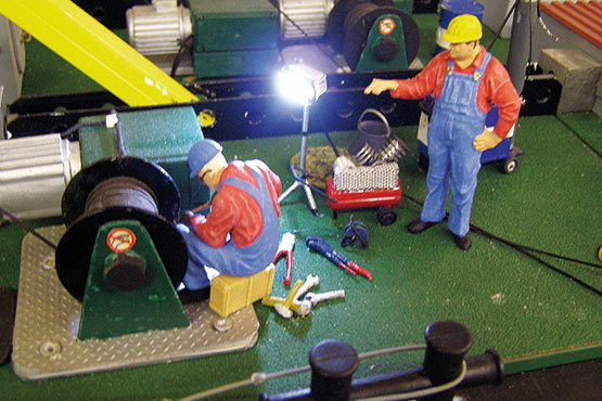 Das Boot kann voll funktionell ausgestattet werden. Alle Lampenkörper können mit LED bestückt werden, die Lackdrähte verschwinden komplett im Mast und Ausleger und werden zentral im Rumpf verschalten. Im Bausatz ist bereits ein Beleuchtungssatz für die nautische Beleuchtung, den Suchscheinwerfer und das Blaulicht enthalten. Der weitere Ausbau der Beleuchtung ist mit Hilfe des LED-Sets 5677/51 machbar.
