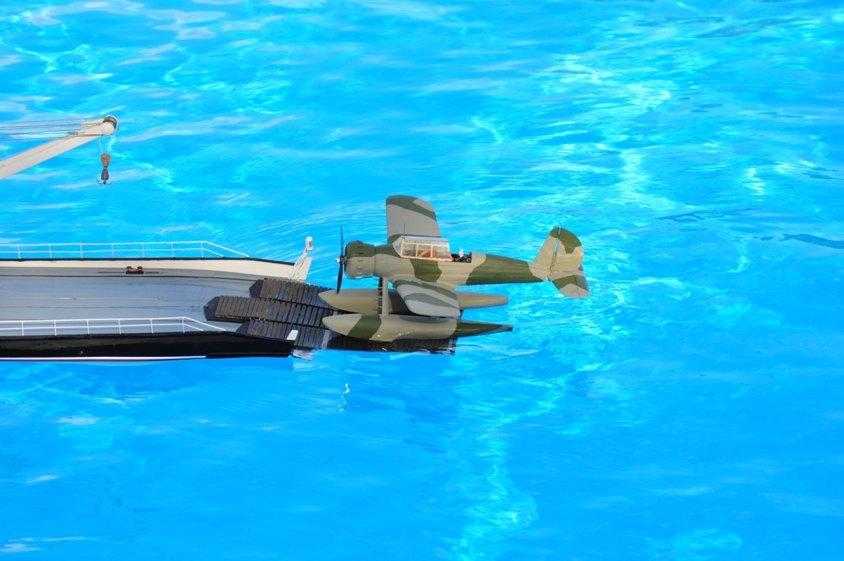 Die beiden Löschmonitore sind mit Hilfe der optionalen Wasserpumpe 7003/90 funktionsfähig und liegen dem Bausatz bei, ebenso die benötigten Kupplungen und Anschlüsse für die Schlauchführungen. Das Spantgerüst im Rumpf sieht den Einbau der Wasserpumpe bereits vor und die ausführlich gestaltete Bauanleitung zeigt genau deren Einbau und Anschluß.