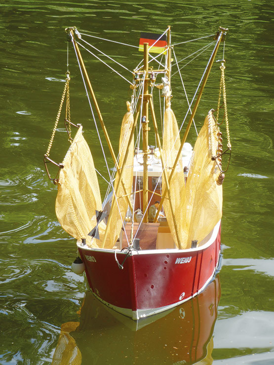 Das Boot kann voll funktionell ausgestattet werden. Alle Lampenkörper können mit LED bestückt werden, die Lackdrähte verschwinden komplett im Mast und Ausleger und werden zentral im Rumpf verschalten. Im Bausatz ist bereits ein Beleuchtungssatz für die nautische Beleuchtung, den Suchscheinwerfer und das Blaulicht enthalten. Der weitere Ausbau der Beleuchtung ist mit Hilfe des LED-Sets 5677/51 machbar.