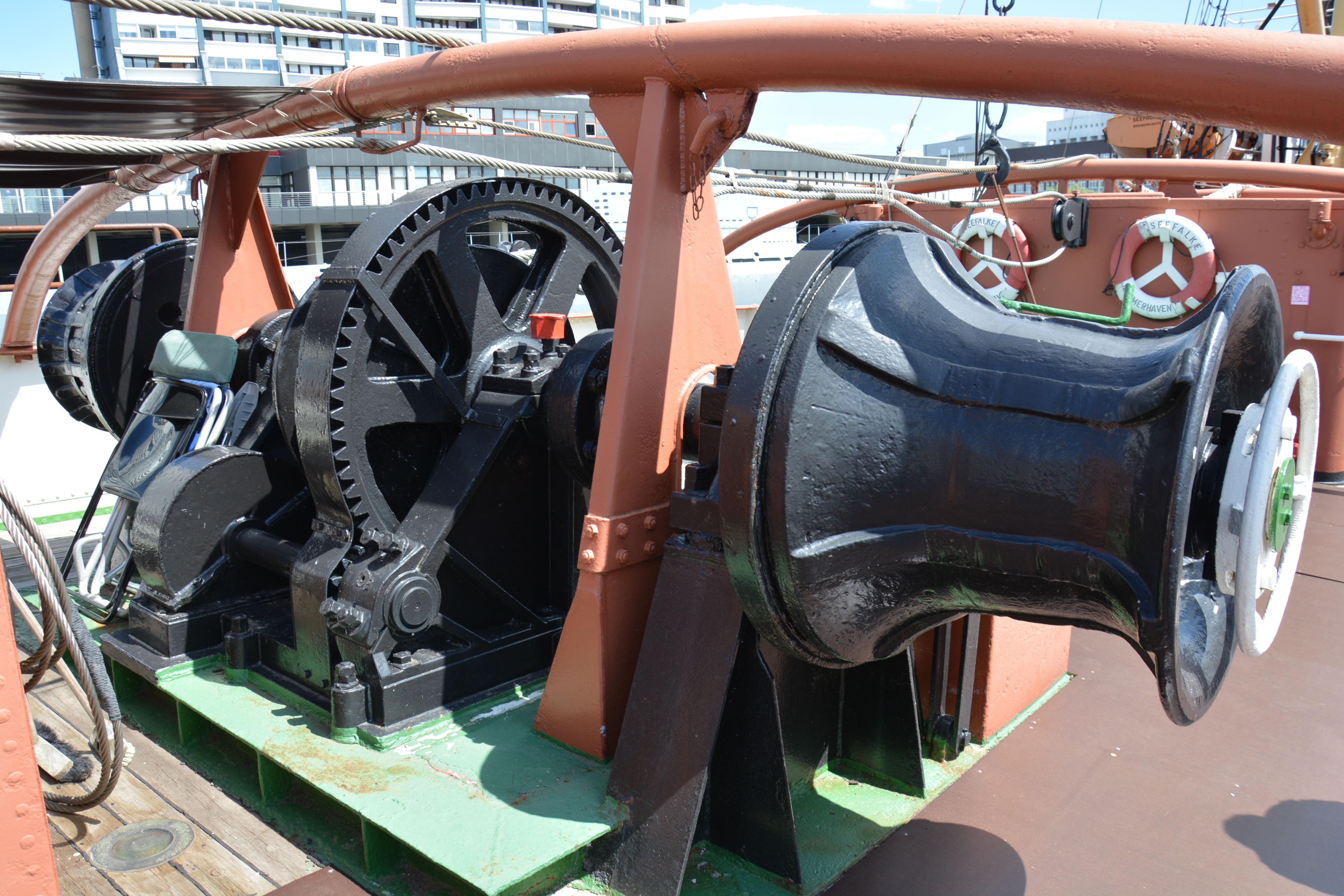 Der Beschlagteilesatz ist sehr umfangreich und besteht u.a. aus sämtlichen Lampenkörpern, Rettungsringen, Anker, Ankerwinde, funktionsfähige Beleuchtung wie Suchscheinwerfer, Blaulicht und nautische Beleuchtung, Antennen, motorbetriebenes Radar, zwei Löschmonitore mit Schlauchadapter, Signalhörner, Lautsprecher, eine große Anzahl hochwertiger 3D-Druckteile, Trittstufen, Reling, Fahrstandausbau, Poller, Klampen, Lichtmast mit Arbeitsscheinwerfer und einiges mehr. Der Beschlagteilesatz ist im Bausatz enthalten und muss nicht extra bestellt werden.