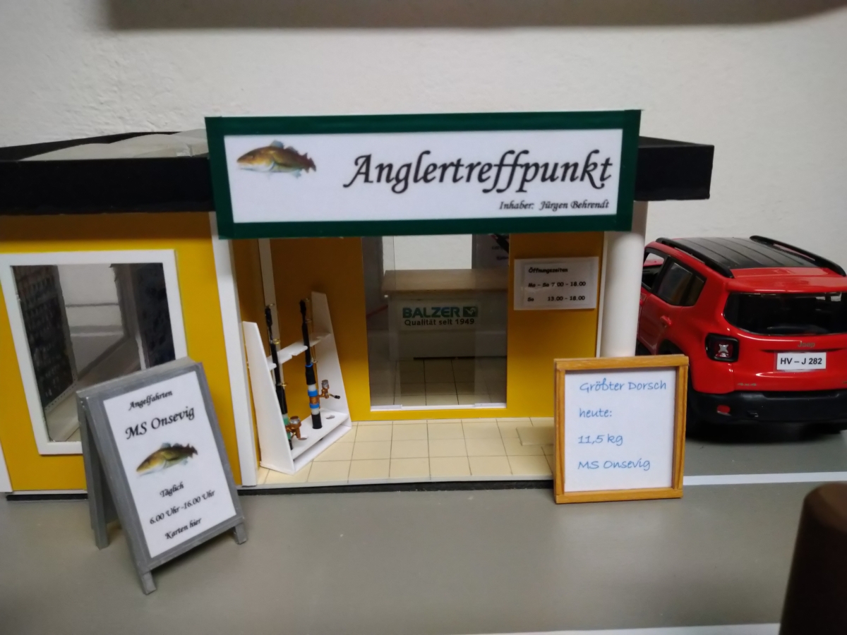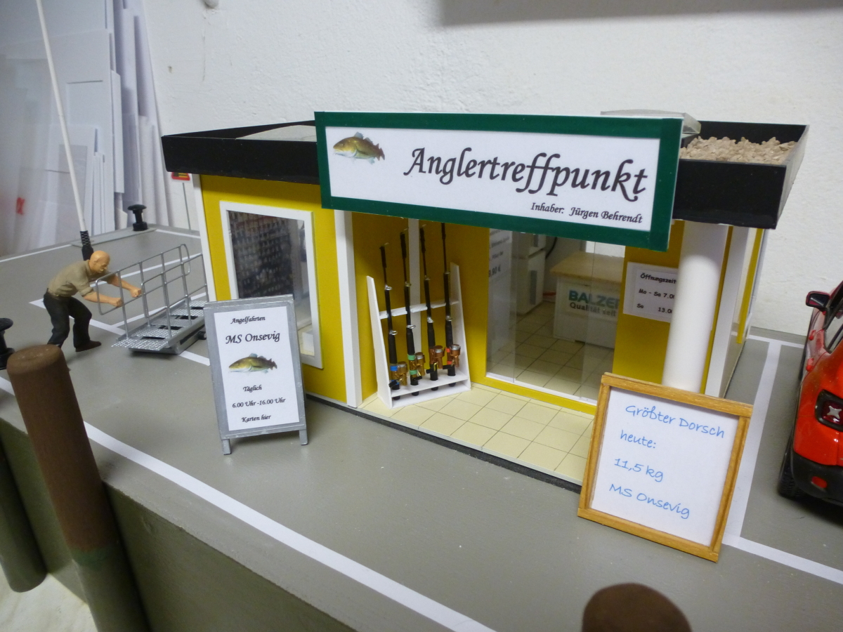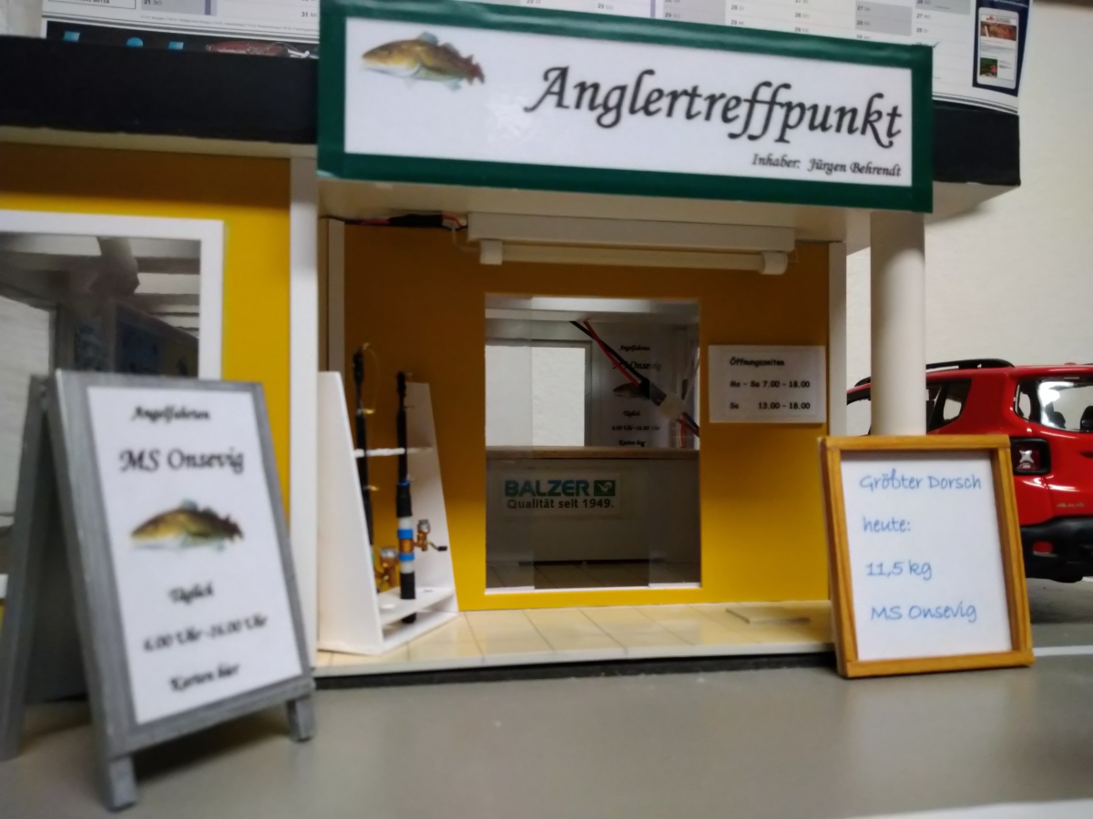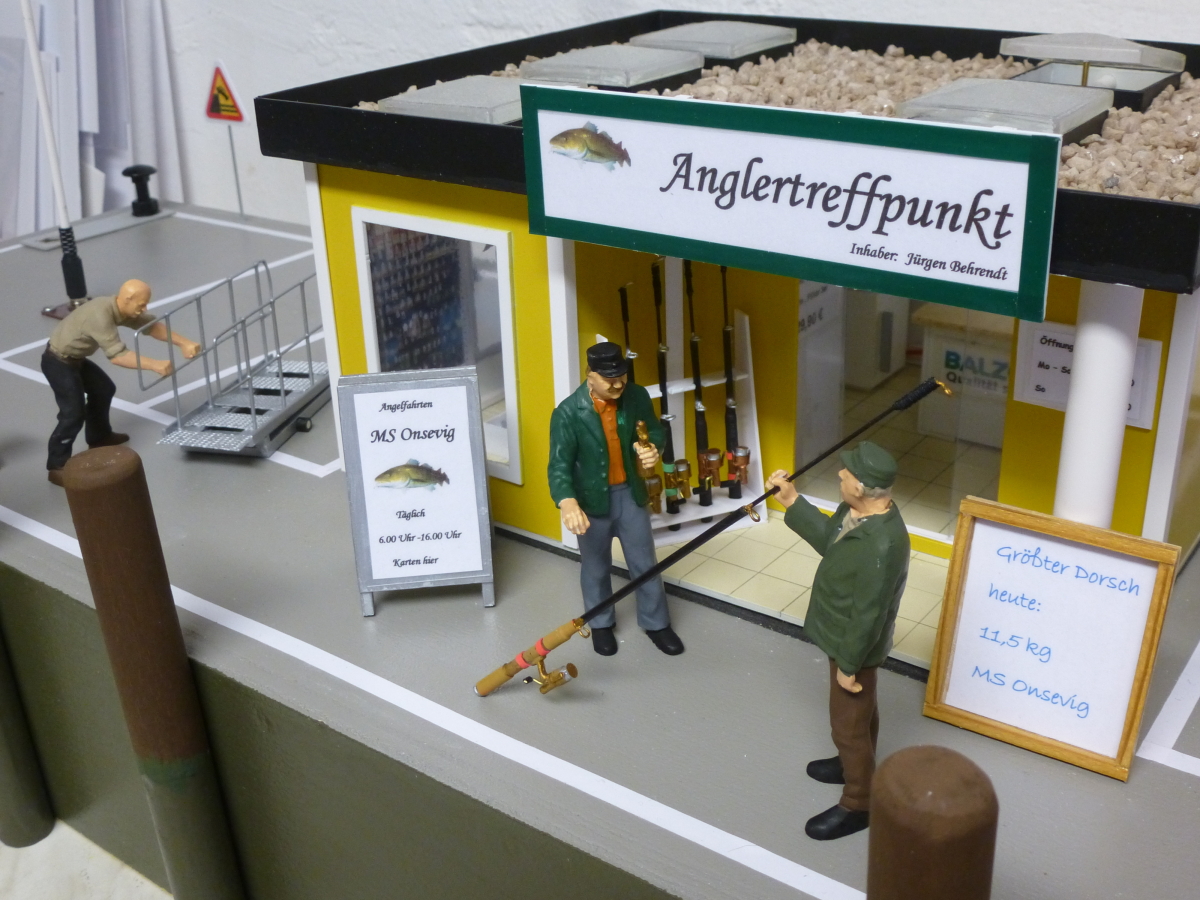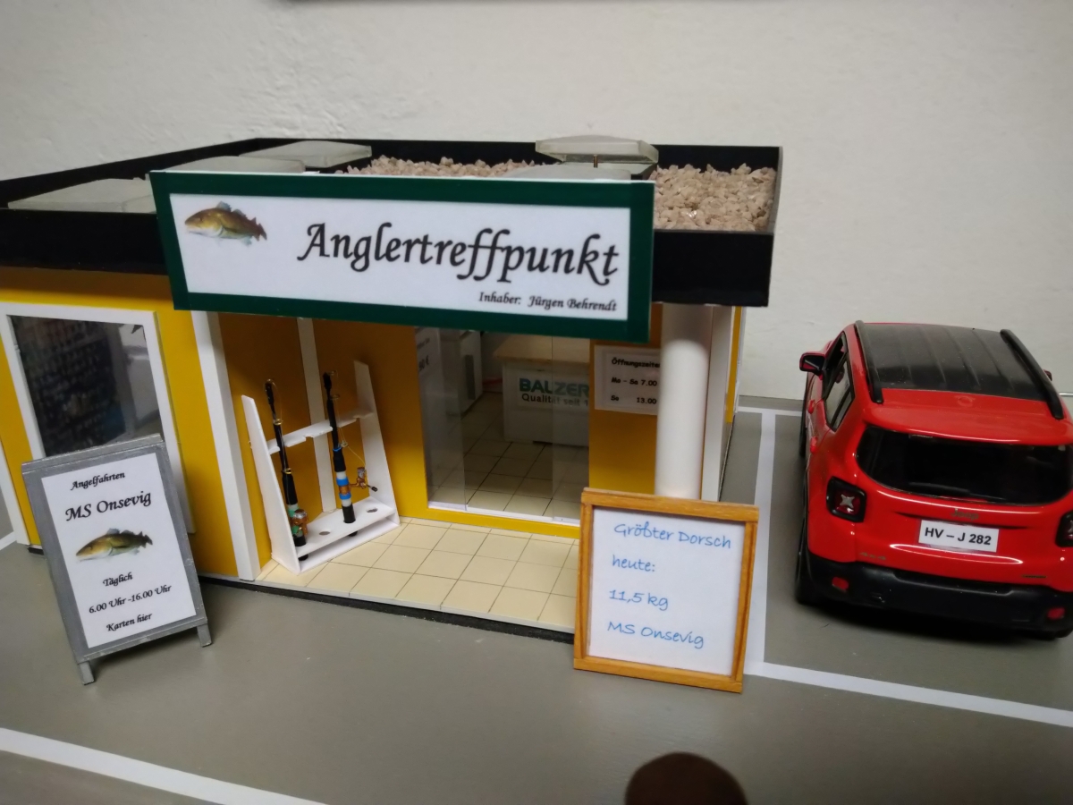 Als passionierter Angler ist Jürgen Behrendt speziell in den 80er- und 90er-Jahren öfter zum Hochseefischen nach Heiligenhafen gefahren. Der Urlaubsort hat einen ansehnlichen Fischereihafen, von dem aus die umgebauten Angelkutter in die Fanggebiete der Ostsee rund um die Insel Fehmarn ausgelaufen sind. In den 80ern gab es noch kein Internet, die benötigten Pilker, Ruten, Köder usw. kaufte man direkt in einem kleinen Laden im Hafen. Dieser kleine Laden war Vorbild für seinen Angelkiosk, den er als Anlegestelle für seinen Angelkutter Onsevig gebaut hat.