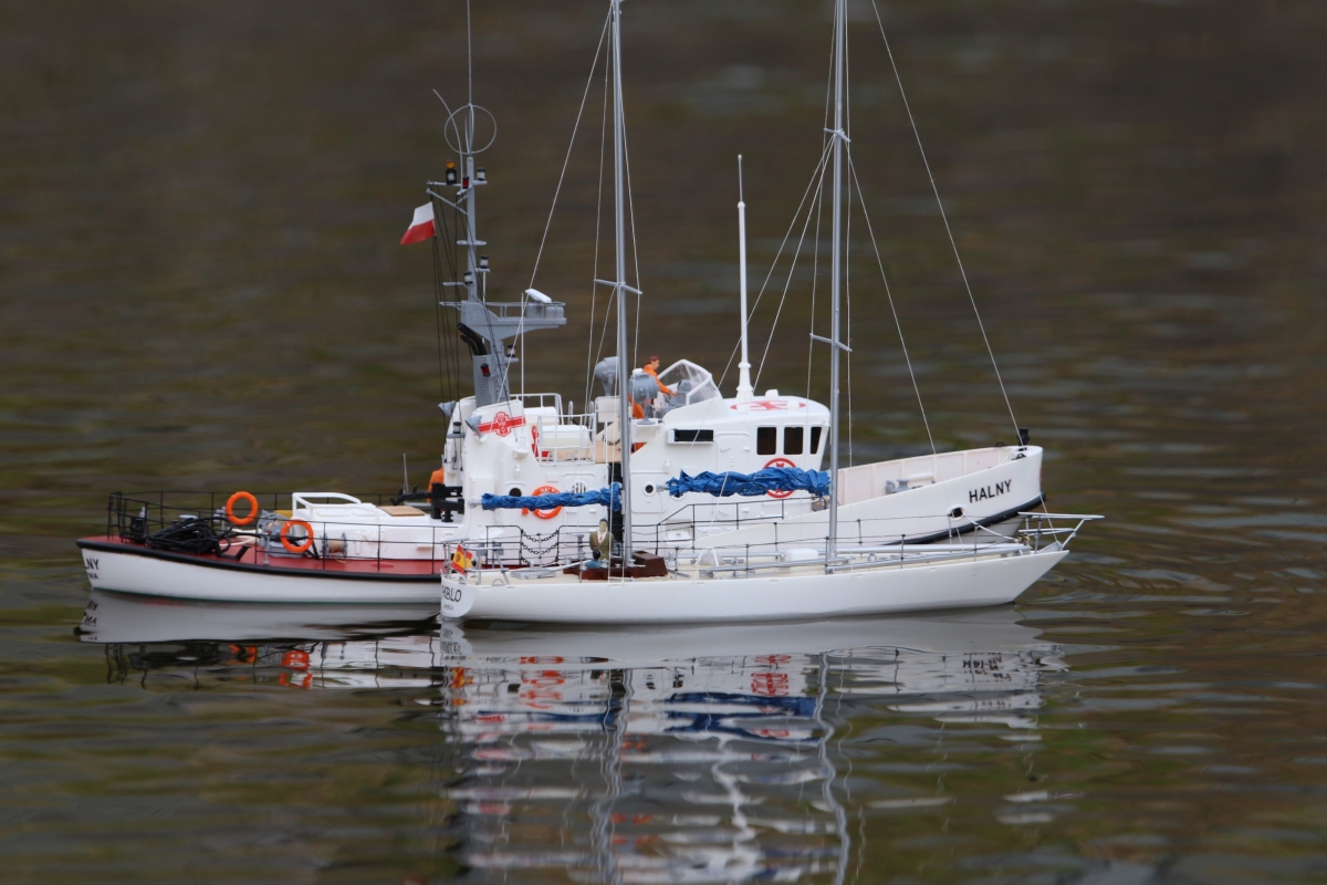 Das Boot kann voll funktionell ausgestattet werden. Alle Lampenkörper können mit LED bestückt werden, die Lackdrähte verschwinden komplett im Mast und Ausleger und werden zentral im Rumpf verschalten. Im Bausatz ist bereits ein Beleuchtungssatz für die nautische Beleuchtung, den Suchscheinwerfer und das Blaulicht enthalten. Der weitere Ausbau der Beleuchtung ist mit Hilfe des LED-Sets 5677/51 machbar.