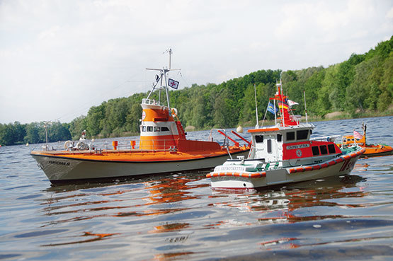 Das FLB-12 ist ein Feuerlöschboot, wie es auf deutschen Binnengewässern zum Einsatz kommt. Es wurde Originalbooten nachempfunden und besticht durch einen sehr hohen Detaillierungsgrad. Angetrieben wird das Modell von einem 28-mm-Außenläufer-Motor.