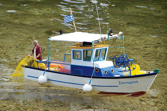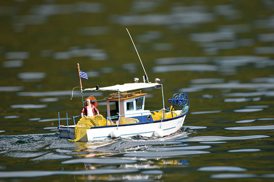 Das Boot kann voll funktionell ausgestattet werden. Alle Lampenkörper können mit LED bestückt werden, die Lackdrähte verschwinden komplett im Mast und Ausleger und werden zentral im Rumpf verschalten. Im Bausatz ist bereits ein Beleuchtungssatz für die nautische Beleuchtung, den Suchscheinwerfer und das Blaulicht enthalten. Der weitere Ausbau der Beleuchtung ist mit Hilfe des LED-Sets 5677/51 machbar.