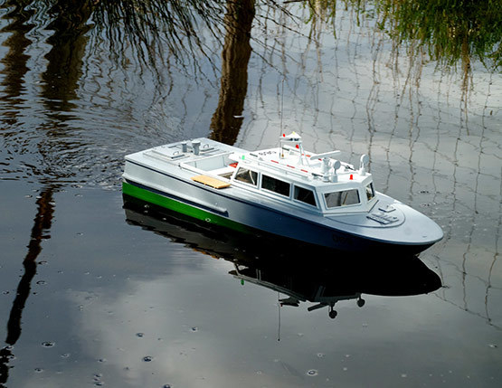 Das FLB-12 ist ein Feuerlöschboot, wie es auf deutschen Binnengewässern zum Einsatz kommt. Es wurde Originalbooten nachempfunden und besticht durch einen sehr hohen Detaillierungsgrad. Angetrieben wird das Modell von einem 28-mm-Außenläufer-Motor.