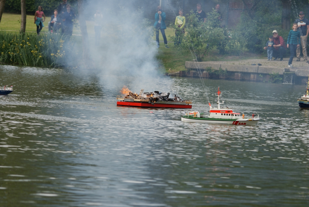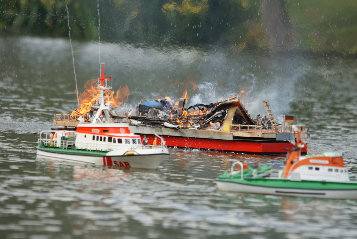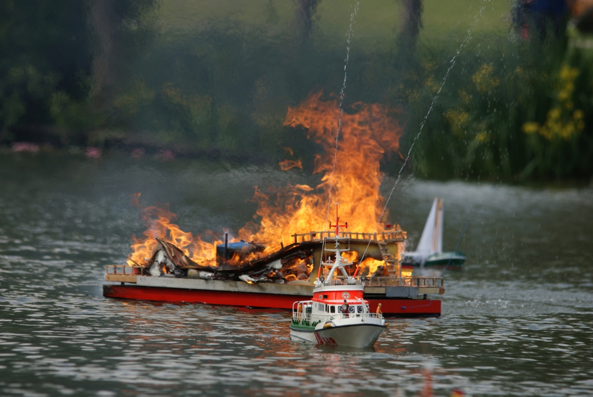 Neben der eigentlichen Ausstellung und der Vorführung der zahlreichen Modelle zählte die „Feuerlöschübung“ zu den echten Hinguckern. Dabei wurden „Modelle“ der Vereins-Jugendgruppe ferngezündet und anschließend gelöscht. Die „Schwäne“ zum Selbstfahren (Vereinsboote für die Zuschauer) sowie die Wertungsläufe zur IG-Südwestmeisterschaft der ECO- und S-7-Klasse standen in der Zuschauergunst ebenfalls ganz weit vorne.