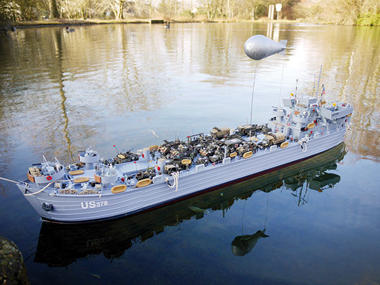 Das FLB-12 ist ein Feuerlöschboot, wie es auf deutschen Binnengewässern zum Einsatz kommt. Es wurde Originalbooten nachempfunden und besticht durch einen sehr hohen Detaillierungsgrad. Angetrieben wird das Modell von einem 28-mm-Außenläufer-Motor.