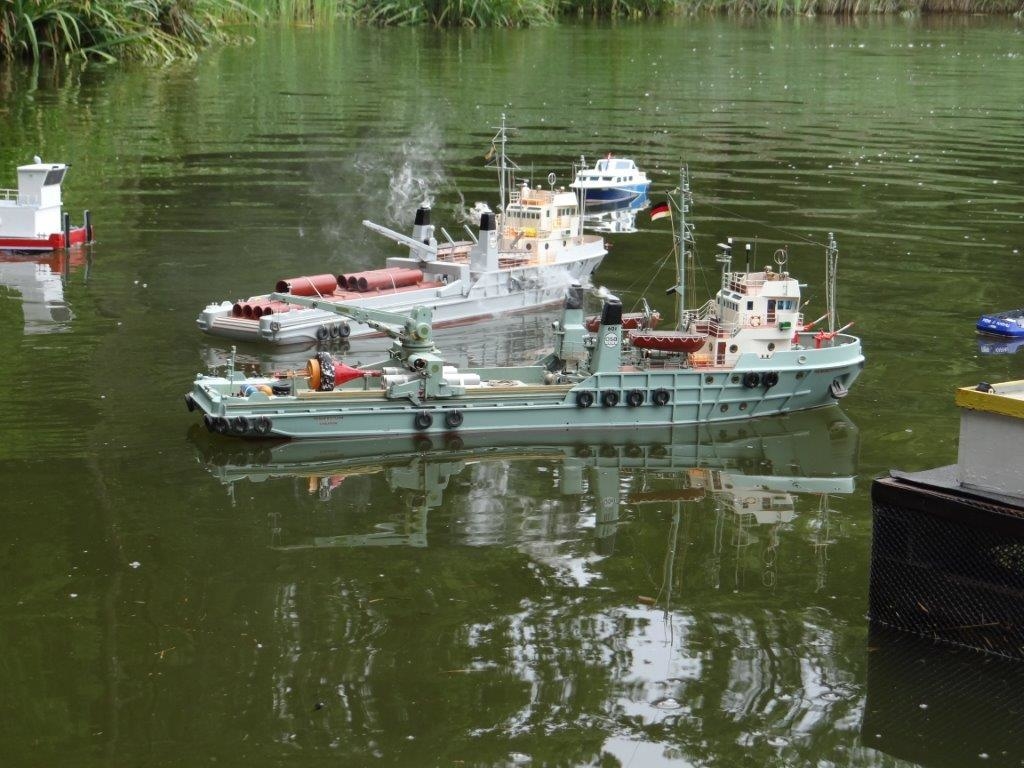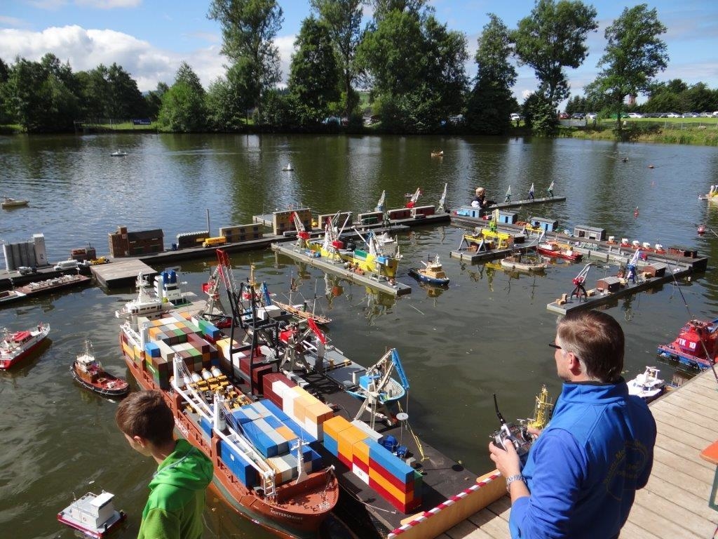 Rund 300 Modelle brachten die Teilnehmer mit – Modelle in allen erdenklichen Größen und Modelle aller erdenklichen Schiffstypen. Der Schwerpunkt liegt klar bei Arbeitsschiffen, die fühlen sich in dieser Hafenanlage am Wohlsten und das Manövrieren im Hafen macht wesentlich mehr Spaß, als einfach nur über einen See zu fahren.