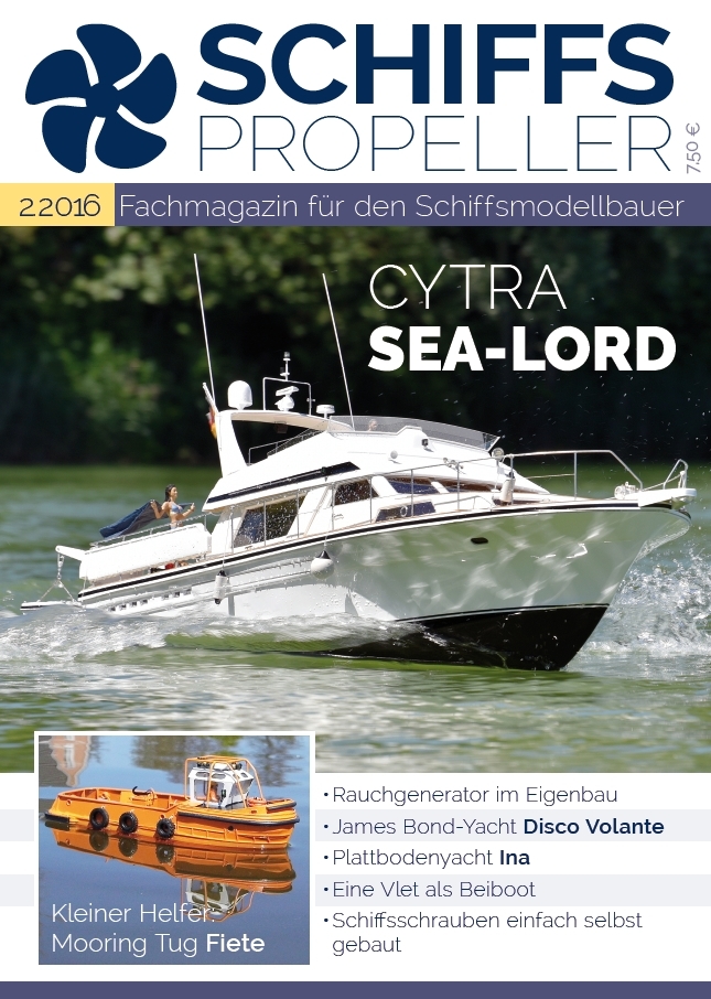 Mit ganz anderen Schwierigkeiten hatte Alfred Schu bei seinem Modell einer Yacht der Cytra-Werft zu kämpfen. Doch er ließ sich nicht beirren und erschuf auf der Basis eines GFK-Rumpfes im Maßstab 1:10 eine Yacht der ganz besonderen Art mit einem außergewöhnlichen Antriebskonzept – und vielen technischen Leckerbissen als Detaillösungen.