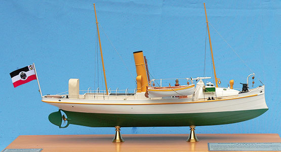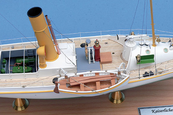 Das Boot kann voll funktionell ausgestattet werden. Alle Lampenkörper können mit LED bestückt werden, die Lackdrähte verschwinden komplett im Mast und Ausleger und werden zentral im Rumpf verschalten. Im Bausatz ist bereits ein Beleuchtungssatz für die nautische Beleuchtung, den Suchscheinwerfer und das Blaulicht enthalten. Der weitere Ausbau der Beleuchtung ist mit Hilfe des LED-Sets 5677/51 machbar.