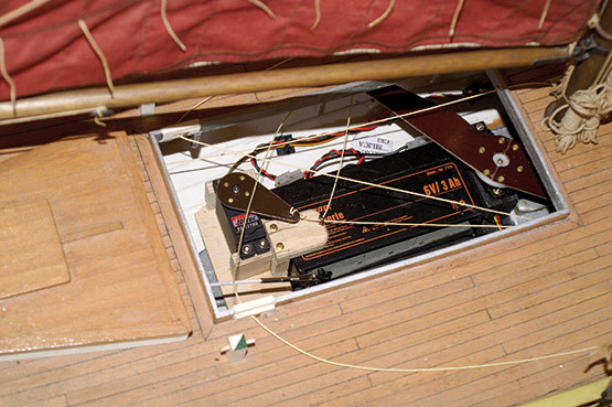 Die beiden Löschmonitore sind mit Hilfe der optionalen Wasserpumpe 7003/90 funktionsfähig und liegen dem Bausatz bei, ebenso die benötigten Kupplungen und Anschlüsse für die Schlauchführungen. Das Spantgerüst im Rumpf sieht den Einbau der Wasserpumpe bereits vor und die ausführlich gestaltete Bauanleitung zeigt genau deren Einbau und Anschluß.