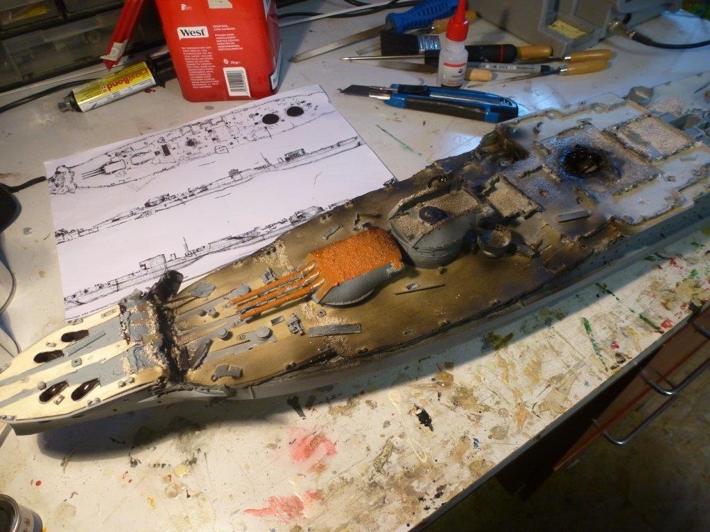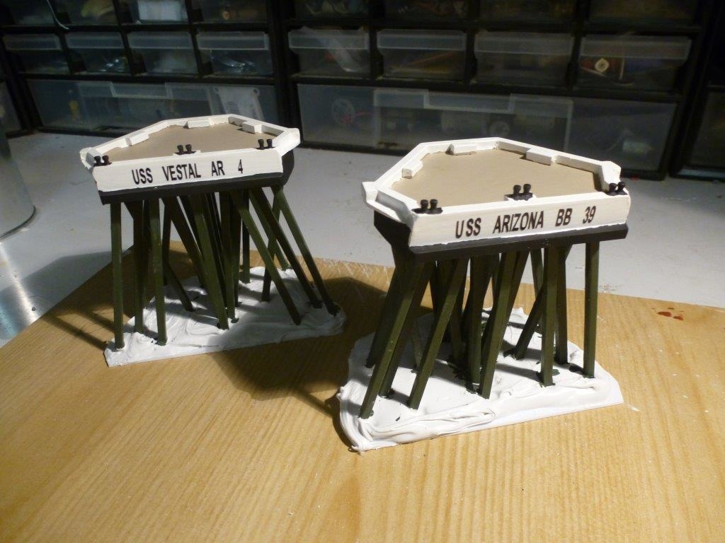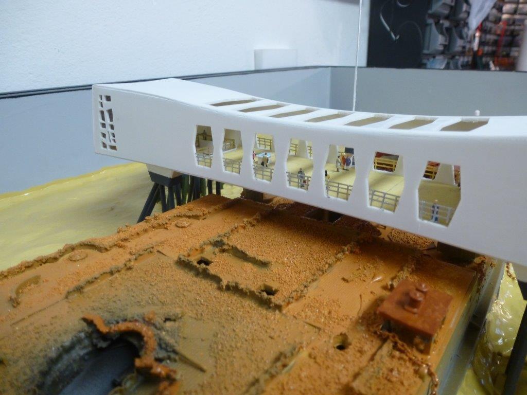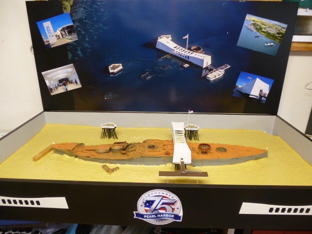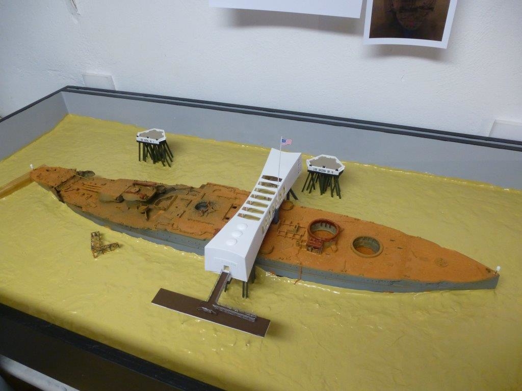 Bei dem Angriff wurde das Schlachtschiff USS Arizona am Schwersten getroffen. Die Arizona sank in nur neun Minuten und brannte zwei Tage lang, das Schiff glühte dabei irreparabel aus. Die Arizona wurde als Kriegsgrab registriert und am 1. Dezember 1942 aus der Flottenliste gestrichen. Quer über dem Wrack wurde 1961/62 ein 56 Meter langes weißes Gebäude als Gedenkstätte errichtet, das USS Arizona Memorial des Architekten Alfred Preis. Das Mahnmal überbaut die unter Denkmalschutz stehenden Überreste des Schiffs. Und genau diese Szenerie wollte Jürgen in einem Diorama im Maßstab 1:200 einfangen. In der MODELLWERFT 10/2017 berichtet er ab Seite 20 vom Bau seines Arizona-Dioramas, welches zu Ausstellungszwecken geflutet werden kann. Die nachfolgende Bildergalerie zeigt zusätzliche Baustufenfotos.