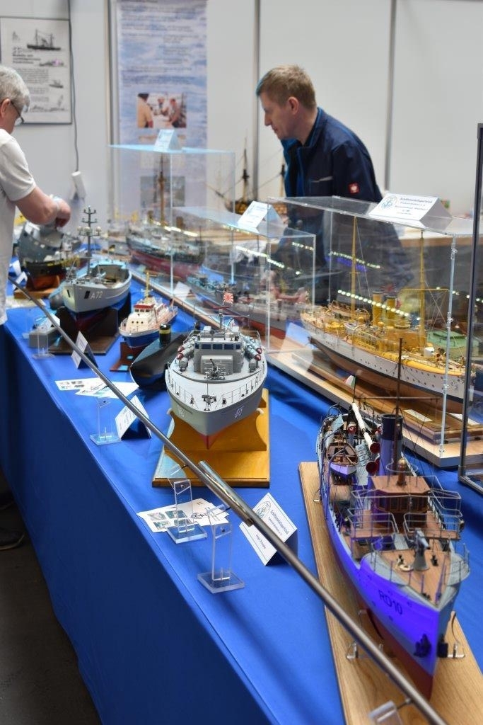Der Schiffsmodellbau ist sicher noch ausbaufähig, immerhin ist ein Wasserbecken zum Vorführen von Modellen selbstverständlich vorhanden. Die als Aussteller anwesenden Vereine brachten eine Vielzahl sehr unterschiedlicher Modelle mit - vom Großprojekt eines modernen Containerschiffs bis zum ungewöhnlichen Fischereifahrzeug in höchster Vorbildtreue und Detailierung.