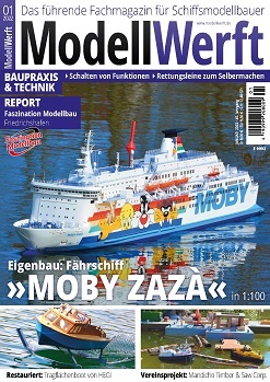 Jeder Schiffsmodellfan, der nicht gerade an der Küste wohnt, sehnt sich danach, wann immer es möglich ist, auch die großen Schiffe zu besichtigen. Entstehen dabei doch meist die besten Ideen für neue Modellprojekte. So ist es nicht verwunderlich, dass oftmals der Urlaub so geplant wird, dass Hobby und Familie gleichermaßen ihr Auskommen finden. So auch bei ModellWerft-Autor Marc Peper, seines Zeichens großer Fährschiffliebhaber, der seinen Familienurlaub auf der wunderschönen Insel Korsika verbrachte. Um dort hinzugelangen, nahm er mit seiner Familie die Fähre vom italienischen Genua. Die Überfahrt fand mit der Moby Zazà der Moby Line statt. Das Schiff zog ihn sogleich in seinen Bann und er begann noch auf der Überfahrt, Fotos anzufertigen und nach Bauplänen zu recherchieren. Schon an Bord stand für ihn die Entscheidung fest, dieses Schiff als Funktionsmodell im Maßstab 1:100 nachzubauen. Das wunderschöne Schiffsmodell, das anschließend innerhalb von 1,5 Jahren Bauzeit entstanden ist, ziert nun den Titel der neuen MODELLWERFT-Ausgabe 01/2022.