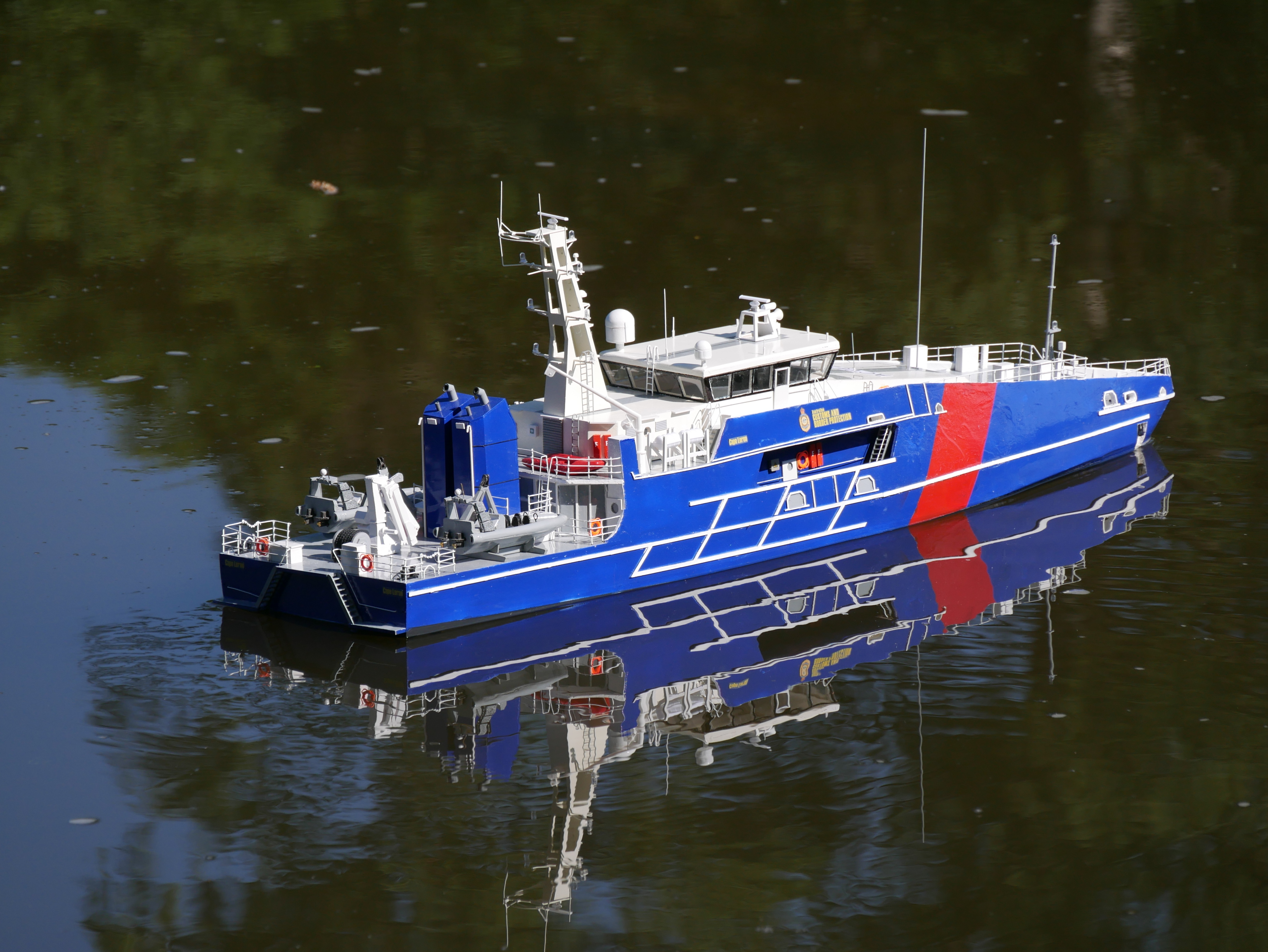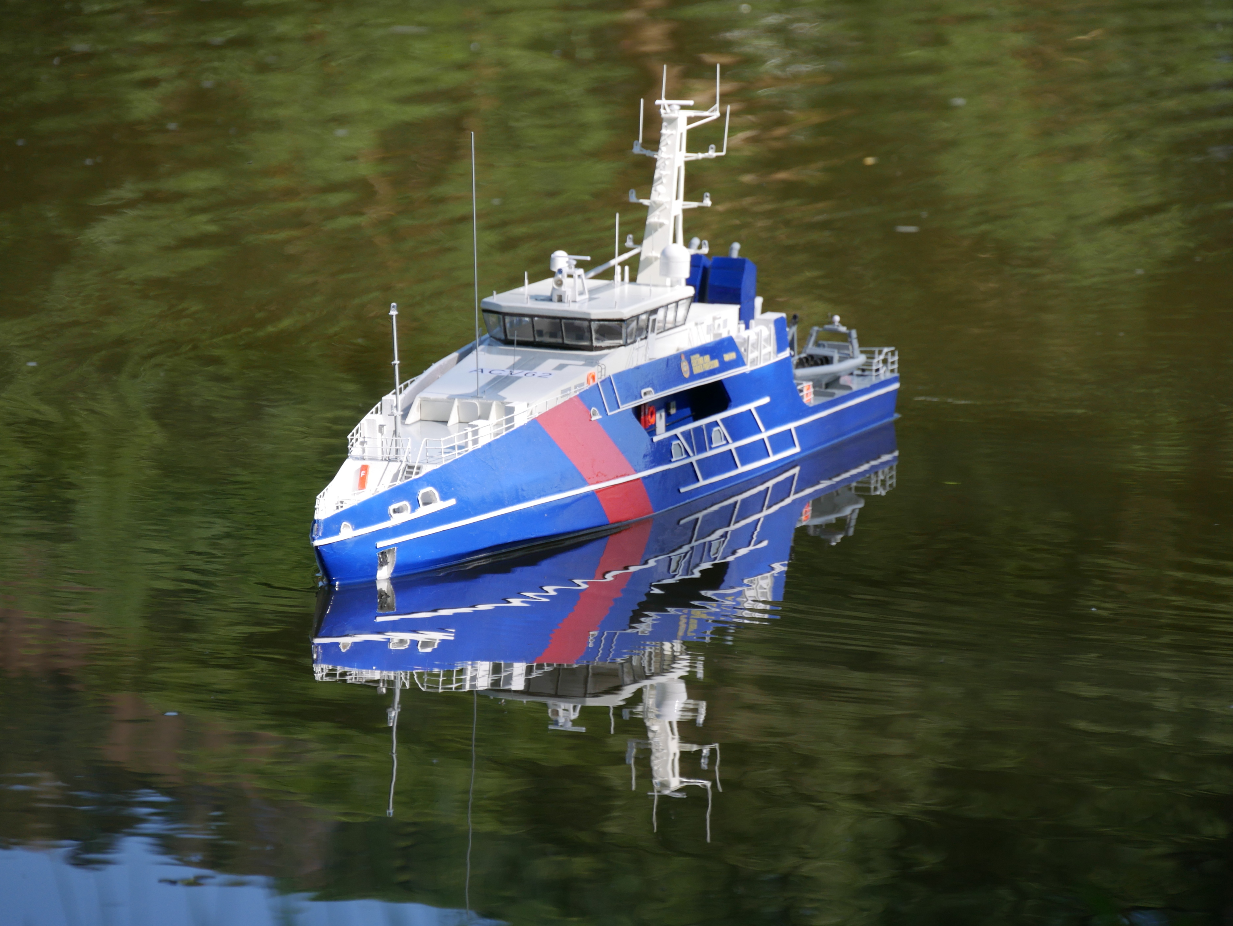 Das FLB-12 ist ein Feuerlöschboot, wie es auf deutschen Binnengewässern zum Einsatz kommt. Es wurde Originalbooten nachempfunden und besticht durch einen sehr hohen Detaillierungsgrad. Angetrieben wird das Modell von einem 28-mm-Außenläufer-Motor.