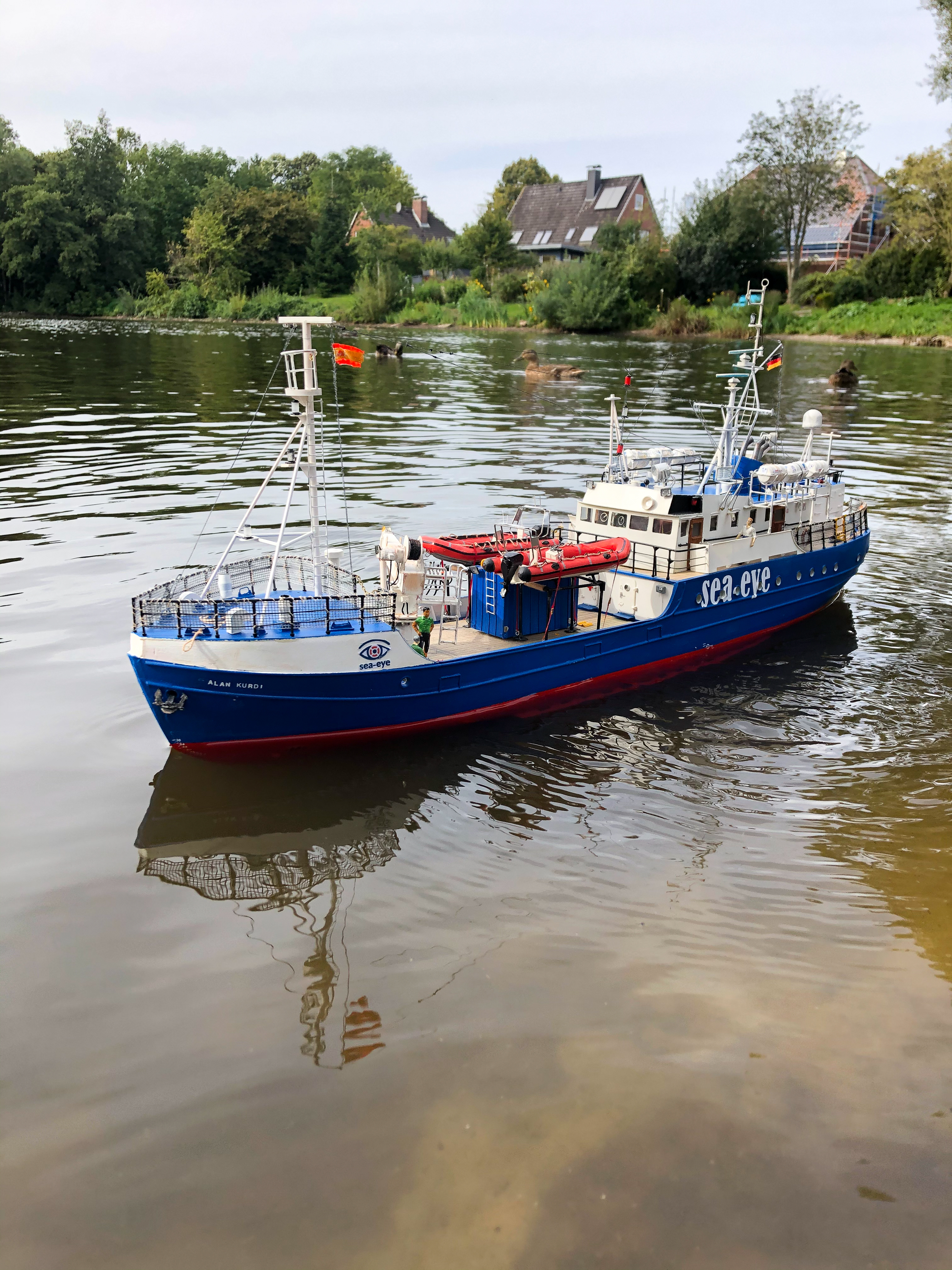 Schiffe können ein bewegtes Leben haben - sie wechseln mehrfach den Eigner, das Land und den Einsatzzweck, werden immer wieder umgebaut oder optimiert. Manche von ihnen werden auch nach vielen Jahrzehnten im Einsatz noch nicht in Rente geschickt. So auch die 1951 gebaute Alan Kurdi, die zunächst als Vermessungsschiff Joh. L. Krueger für den Seehydrograpischen Dienst der DDR im Einsatz war und später unter dem Namen Professor Albrecht Penck Forschungsfahrten in Nord- und Ostsee durchführte. Nach weiteren Stationen erwarb die Nichtregierungsorganisation „Sea-Eye“ 2018 das Schiff und gab ihm den Namen Alan Kurdi. Einsatzgebiet ist seitdem das Mittelmeer. MODELLWERFT-Autor Mathias Nagies hat das Schiff im Maßstab 1:50 nachgebaut. Sein Modell, das den Titel der MODELLWERFT 05/2021 ziert, entstand, abgesehen von der Technik, in kompletter Handarbeit ohne den Zukauf von Zubehörteilen.