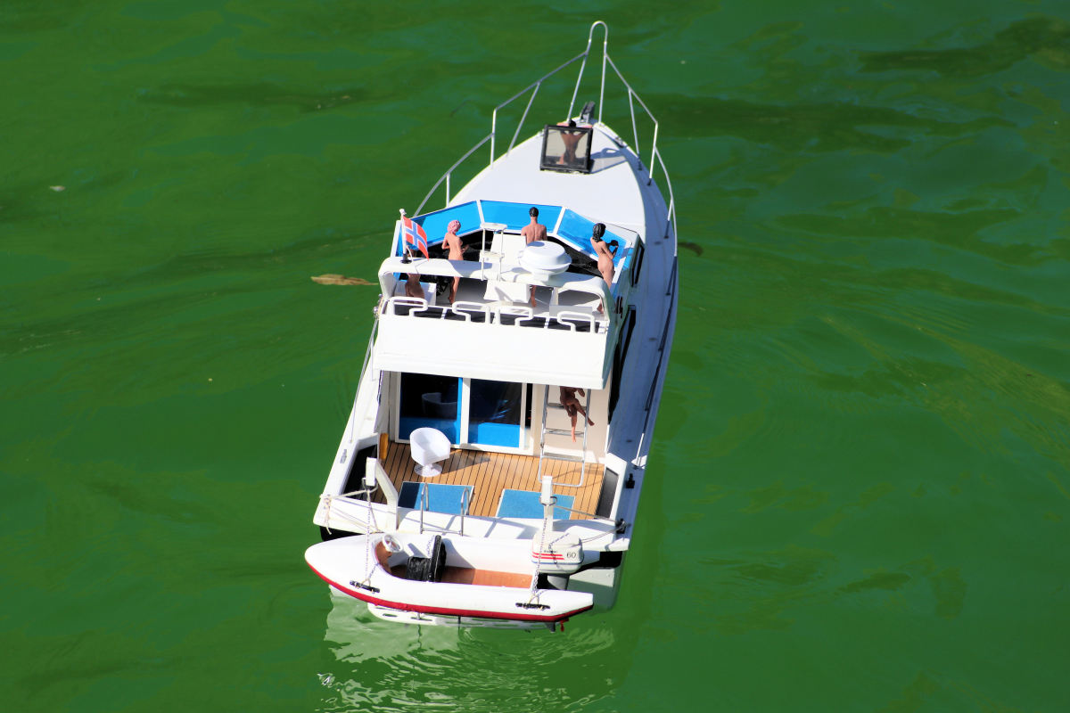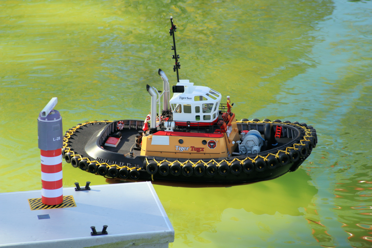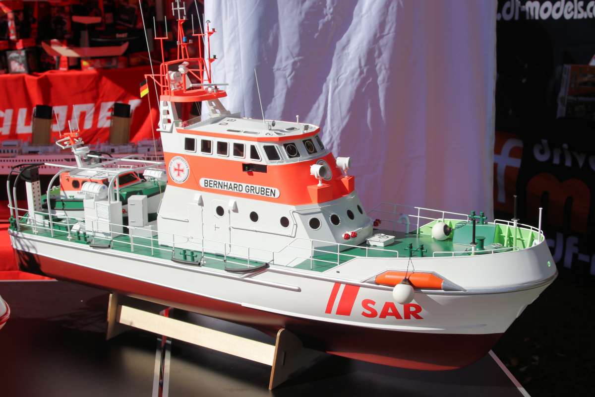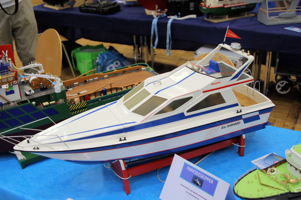 Nahezu alle Modellbausparten waren vertreten, auf dem Sportplatz drehten Modellautos und Motorräder, Panzer und Trucks ihre Runden. Auch Quadrocopter und Modellflugzeuge wurden vorgeführt und im angrenzenden Freibad, das für Badebesucher bereits geschlossen war, drehten die Modellschiffe ihre Runden. Sogar die Firma Graupner SJ war mit einem Stand vertreten und zeigte einige ihrer aktuellen Modelle, Ladetechnik und Fernsteueranlagen. Natürlich durfte auch der benachbarte Händler Modellbau Vordermeier nicht fehlen, hier gab es zumeist RTR-Modelle zu kaufen, so dass Papa oder Mama dem Sohn oder der Tochter gleich mal ein kleines Modell kaufen konnte.