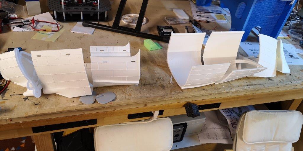 Der Beschlagteilesatz ist sehr umfangreich und besteht u.a. aus sämtlichen Lampenkörpern, Rettungsringen, Anker, Ankerwinde, funktionsfähige Beleuchtung wie Suchscheinwerfer, Blaulicht und nautische Beleuchtung, Antennen, motorbetriebenes Radar, zwei Löschmonitore mit Schlauchadapter, Signalhörner, Lautsprecher, eine große Anzahl hochwertiger 3D-Druckteile, Trittstufen, Reling, Fahrstandausbau, Poller, Klampen, Lichtmast mit Arbeitsscheinwerfer und einiges mehr. Der Beschlagteilesatz ist im Bausatz enthalten und muss nicht extra bestellt werden.