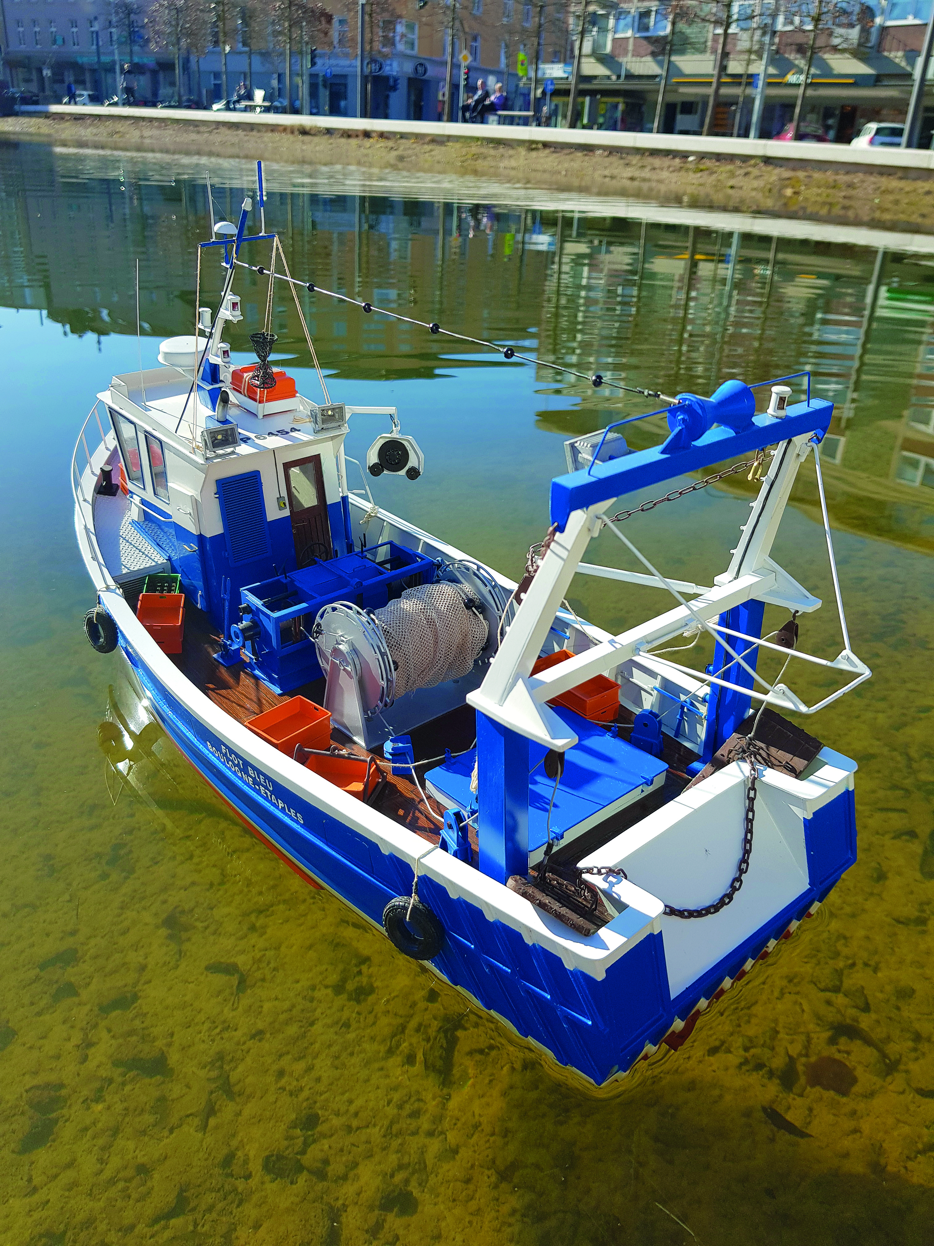 Bei Simprop fand er die Boulogne Etaples, das Modell eines französischen Heckfängers in 1:20 der Firma Billing Boats. Und er sollte nicht enttäuscht werden, die Boulogne Etaples entwickelte sich immer mehr zu seinem Lieblingsmodell. Als aber irgendwann die Zeichen der Zeit an dem Boot nagten, entschied er sich zu einem kompletten Neubau in GFK, der Flot Bleu, welche er in der neuen Ausgabe 07/2022 vorstellt.