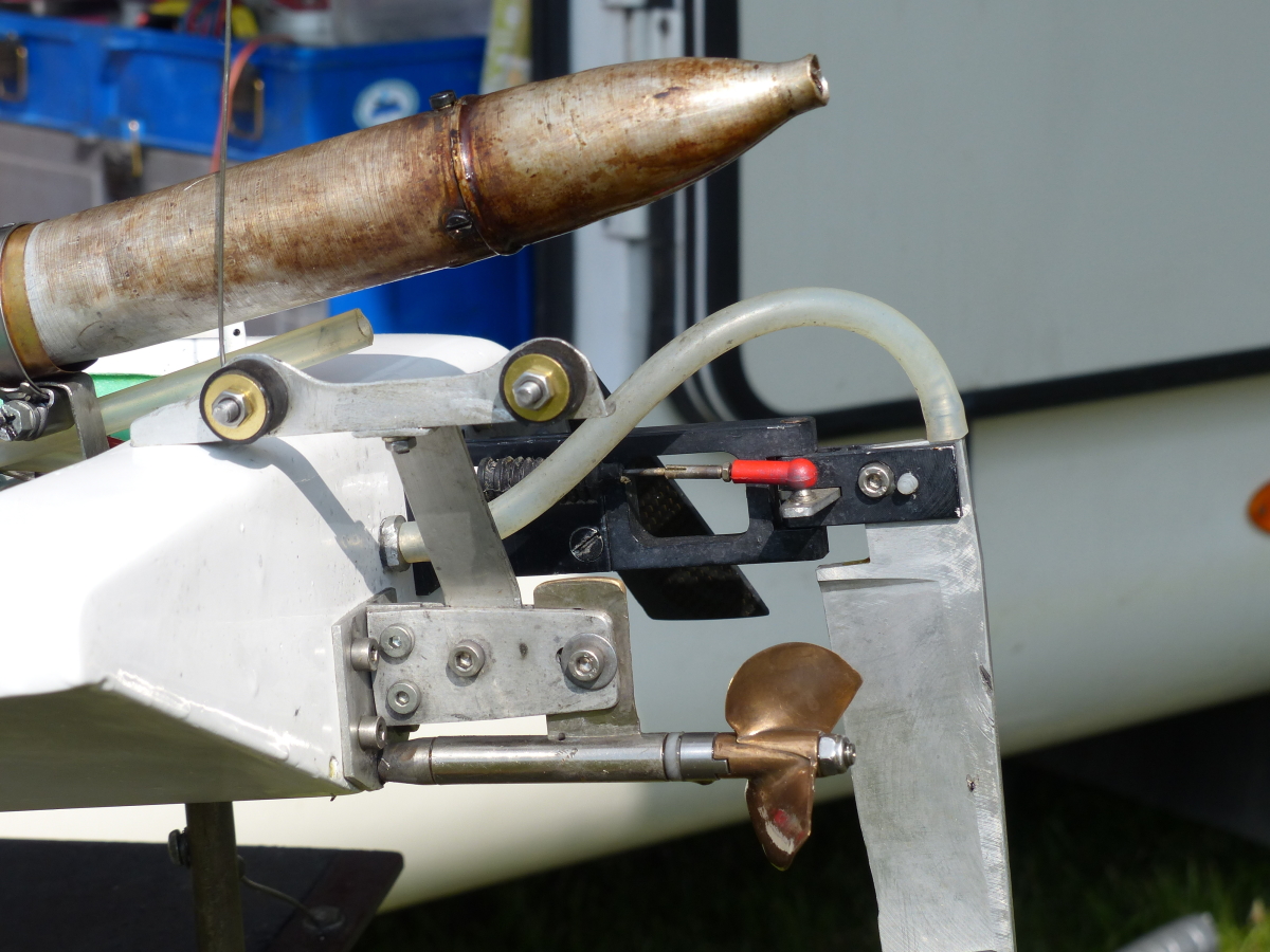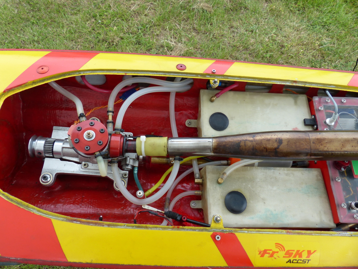 Die beiden Löschmonitore sind mit Hilfe der optionalen Wasserpumpe 7003/90 funktionsfähig und liegen dem Bausatz bei, ebenso die benötigten Kupplungen und Anschlüsse für die Schlauchführungen. Das Spantgerüst im Rumpf sieht den Einbau der Wasserpumpe bereits vor und die ausführlich gestaltete Bauanleitung zeigt genau deren Einbau und Anschluß.