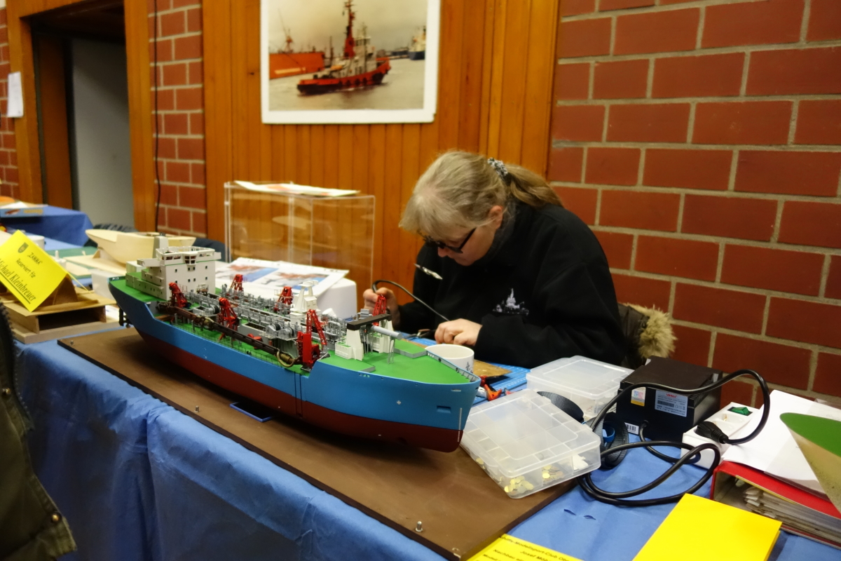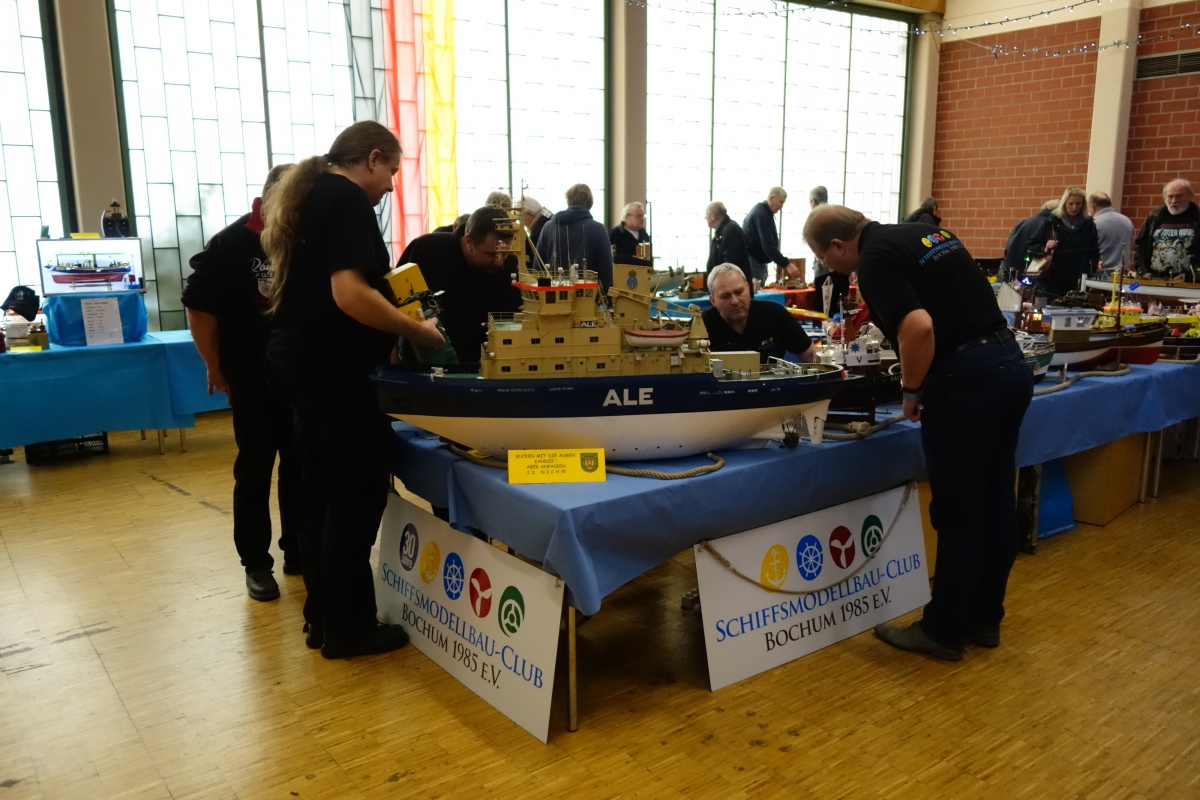 Herr Dieter Matysik, der Vorstand des SMC und des Dachverbandes der Schiffsmodellbauer – dem Nauticus –, erklärte mir die Besonderheiten der Ausstellung. Sie findet seit 1998 nun bereits zum 18. Mal statt. Jeder kann daran teilnehmen und wenn er möchte, seine Modelle von der Naviga-Kommission vor Ort abnehmen lassen. Die Teilnahme hieran ist selbstverständlich freiwillig. Jeder Teilnehmer bekommt eine Urkunde als Dankeschön und sicher auch das gute Gefühl, dass sein Modell bei einer echten Wettbewerbsbewertung honoriert werden würde. An den beiden Tagen waren laut Herrn Matysik 16 Vereine und Interessengruppen mit fast 200 Modellen anwesend. Die weiteste Anreise hatte der SMC Cuxhaven. Ansonsten kamen die Gruppen aus dem Raum Wuppertal bis Krefeld.