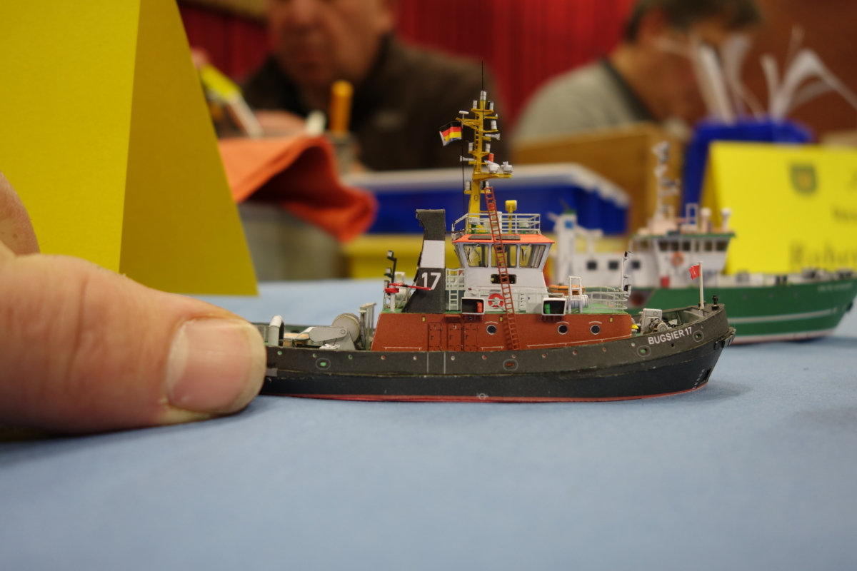Unter den Teilnehmern waren auch 22 Kartonmodellbauer, die Ihre kleinen Kunstwerke aus Papier und Karton vorstellten. Es wurde an vielen Tischen gebaut und so gezeigt, wie schön und entspannend das Hobby sein kann. Die Kartonmodellbauer hatten an beiden Tagen Ihre C-Gruppen-Meisterschaft West für Standmodelle. Hier wurden Punkte und Wertungen gesammelt für weitere Wettbewerbe und Meisterschaften.