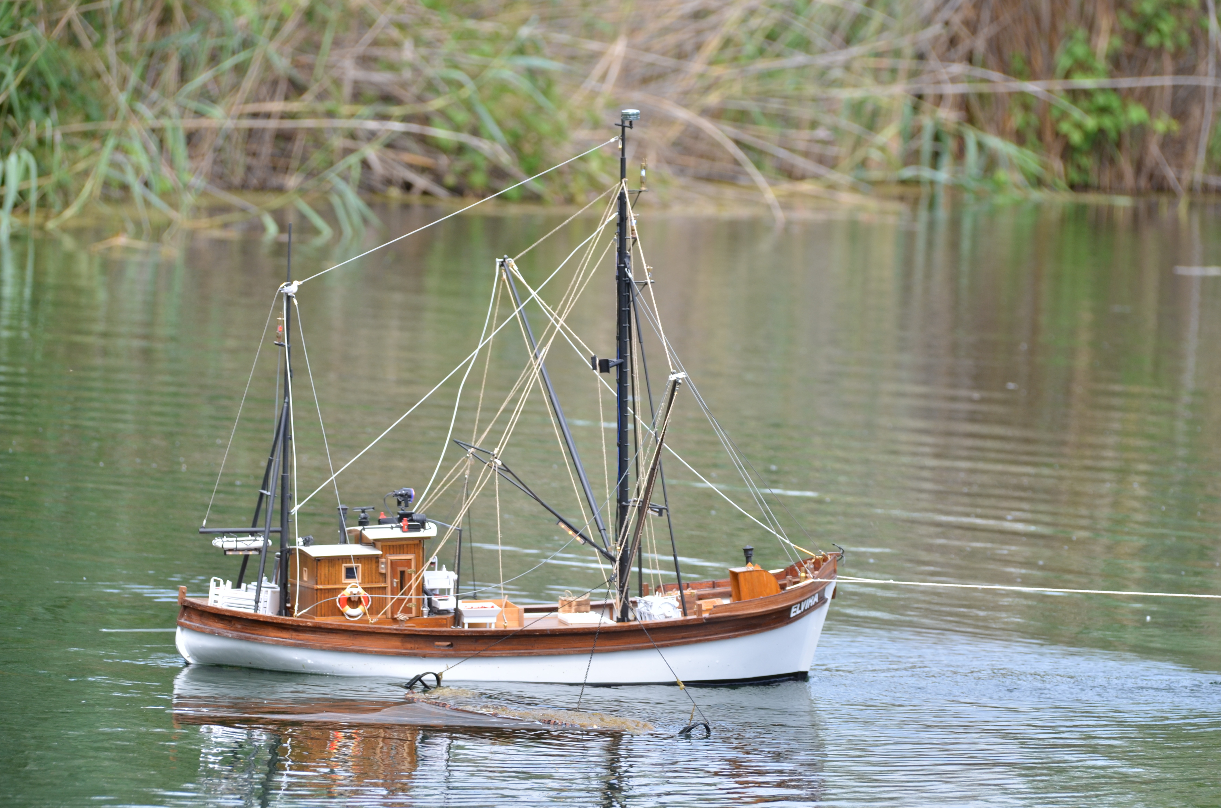 Das Boot kann voll funktionell ausgestattet werden. Alle Lampenkörper können mit LED bestückt werden, die Lackdrähte verschwinden komplett im Mast und Ausleger und werden zentral im Rumpf verschalten. Im Bausatz ist bereits ein Beleuchtungssatz für die nautische Beleuchtung, den Suchscheinwerfer und das Blaulicht enthalten. Der weitere Ausbau der Beleuchtung ist mit Hilfe des LED-Sets 5677/51 machbar.