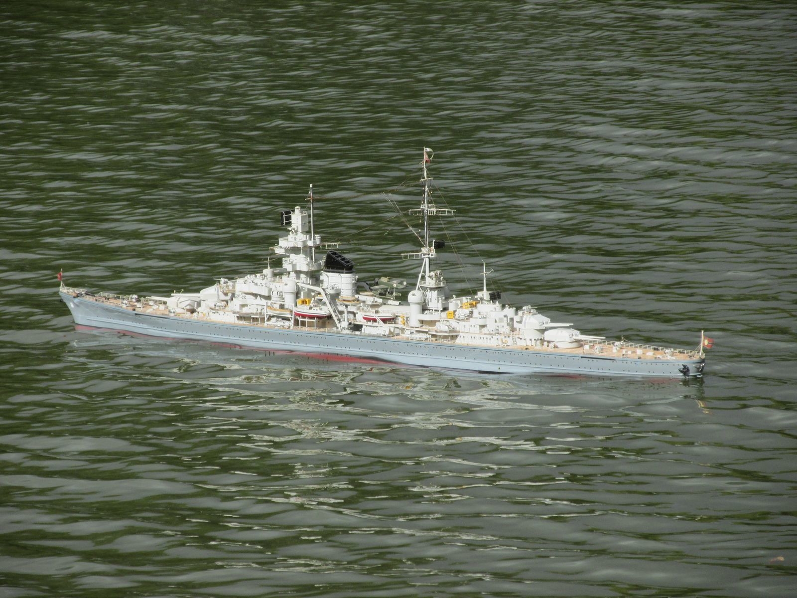 Die meisten der circa 60 Marineschiffe sind im Maßstab 1:100 bzw. 1:96 gehalten. Damit hat ein mittleres Schlachtschiff etwa eine Länge von 2,5 Metern und wiegt fahrfertig 50-60 kg. Wer den Platz hat und die Transportmöglichkeiten brachte auch Modelle von großen Vorbildern in 1:72, 1:50 und 1:35 mit. Sehr beeindrucken waren Zerstörer und Flottentorpedoboote in 1:35 und eine riesengroße Fregatte der Brandenburg-Klasse in 1:50, sie konnte in drei Teile geteilt werden und verschwand so in einem normalen Kombi.