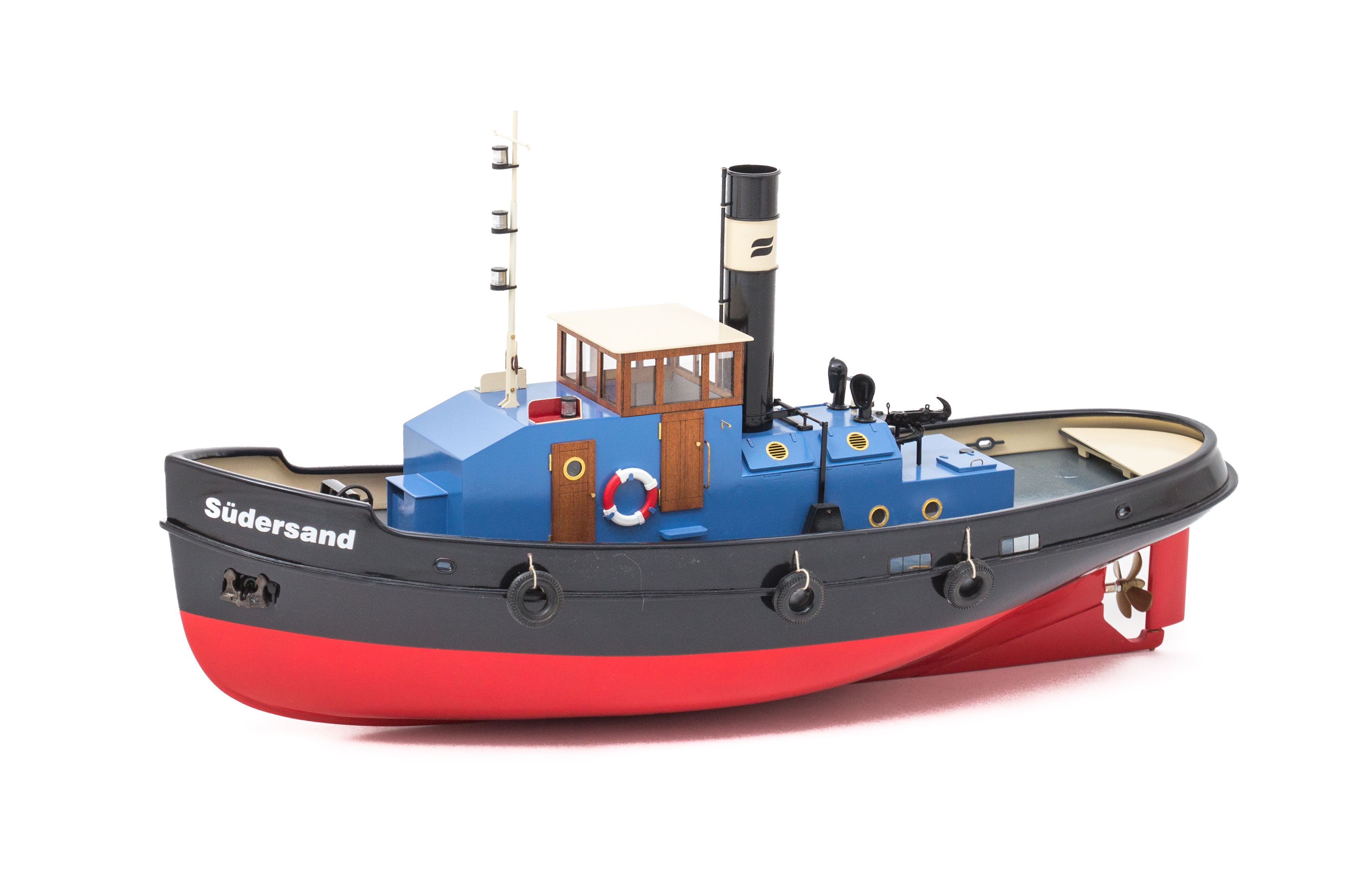Ab November verrichtet der Dampfschlepper Südersand in den Modellhäfen seine Arbeit. Der Bausatz besteht aus einem tiefgezogenen ABS-Rumpf und fein geschnittenen Laserteilen aus Holz und Kunststoff.